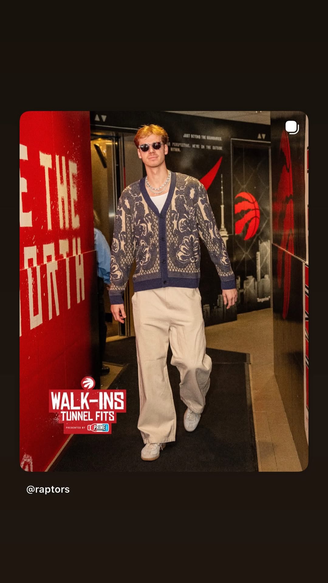 虎扑11月24日讯猛龙球员格雷迪-迪克更新个人社媒,晒出今日赛前入场穿搭照片。