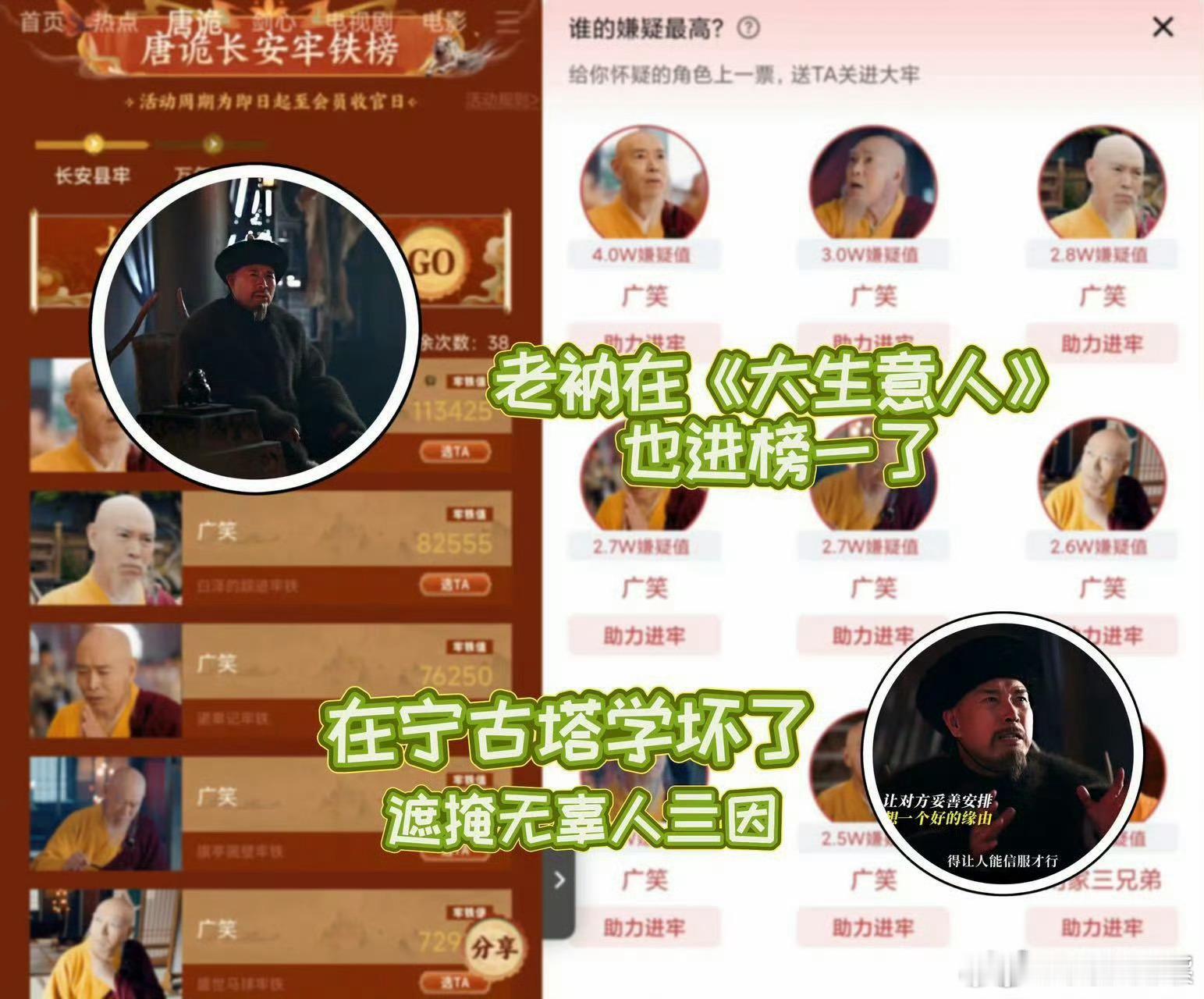 以为沈保平老师跳高雅人士就够抽象了,现在直接玩梗去宁古塔散心谁敢想在《唐诡3》中一度遥遥领先、稳居牢铁榜榜一的方丈,到了大生意人也难保清白!沈保平老师这次在饰演的是宁古塔县令,怎么不算牢铁呢哈哈哈哈!好好好这把子直接在大生意人瞅见了甄远道流放宁古塔后续,真梦幻联动上了!