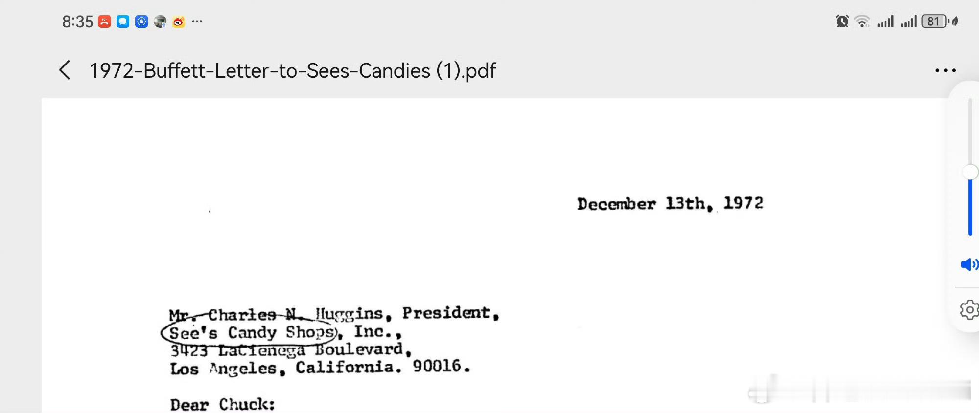超级推荐。沃伦在买入喜事糖果公司后给指定的CEO的信。1972年1月31日,几乎我们所有的人还没有出生时。正当年青的沃伦,Rick,查理,以2500万美元,在合同上签字,买下了Mary See和儿子举办的糖果公司。这是他们商业进化史上的关键时刻。一年后,12月13日,他给指定的CEO Huggins 写的信。认识早的朋友,我们也几年没有再看John Huber(Saber Capital)的文章了。这里搜到他读这封信后做的笔记。