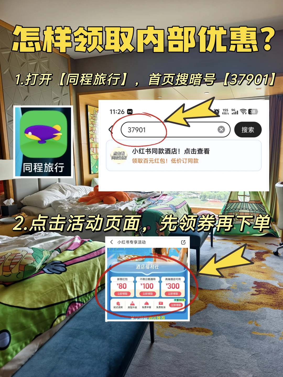 ✅3. 点击领 取你的专属酒店优惠券!(有新客红包、不限日期通用券,还有高 端酒店专享券,至高能省300块!)