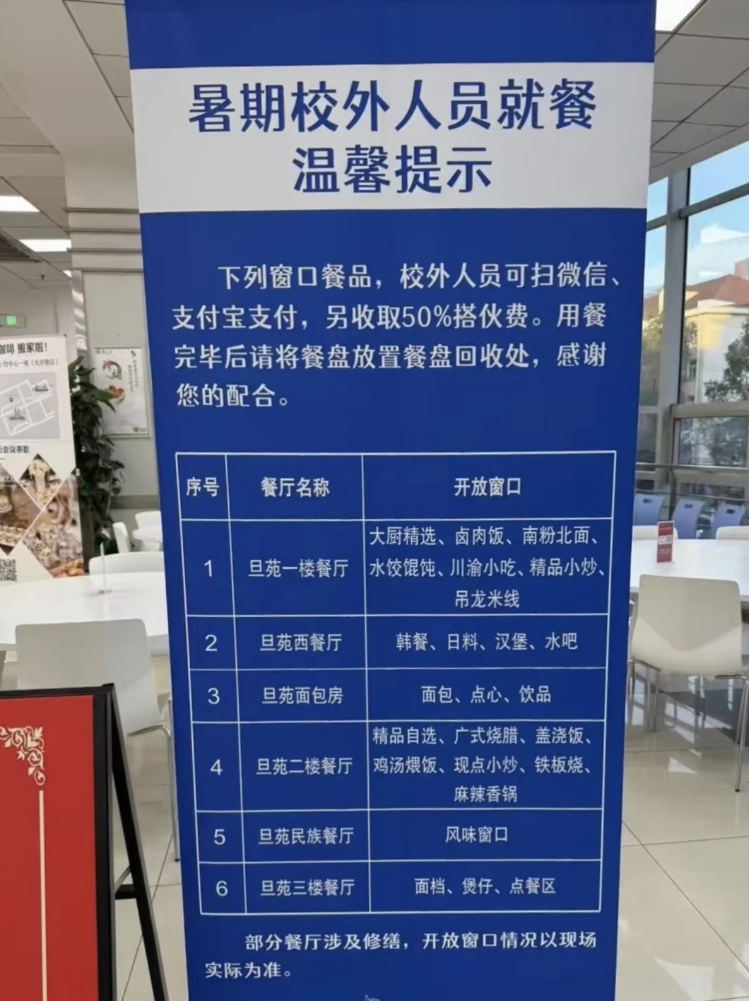 ▫️旦苑食堂3楼:加收50%搭伙费(现在因为交大的事情,复旦学生说也不让进了,我们就没进去)