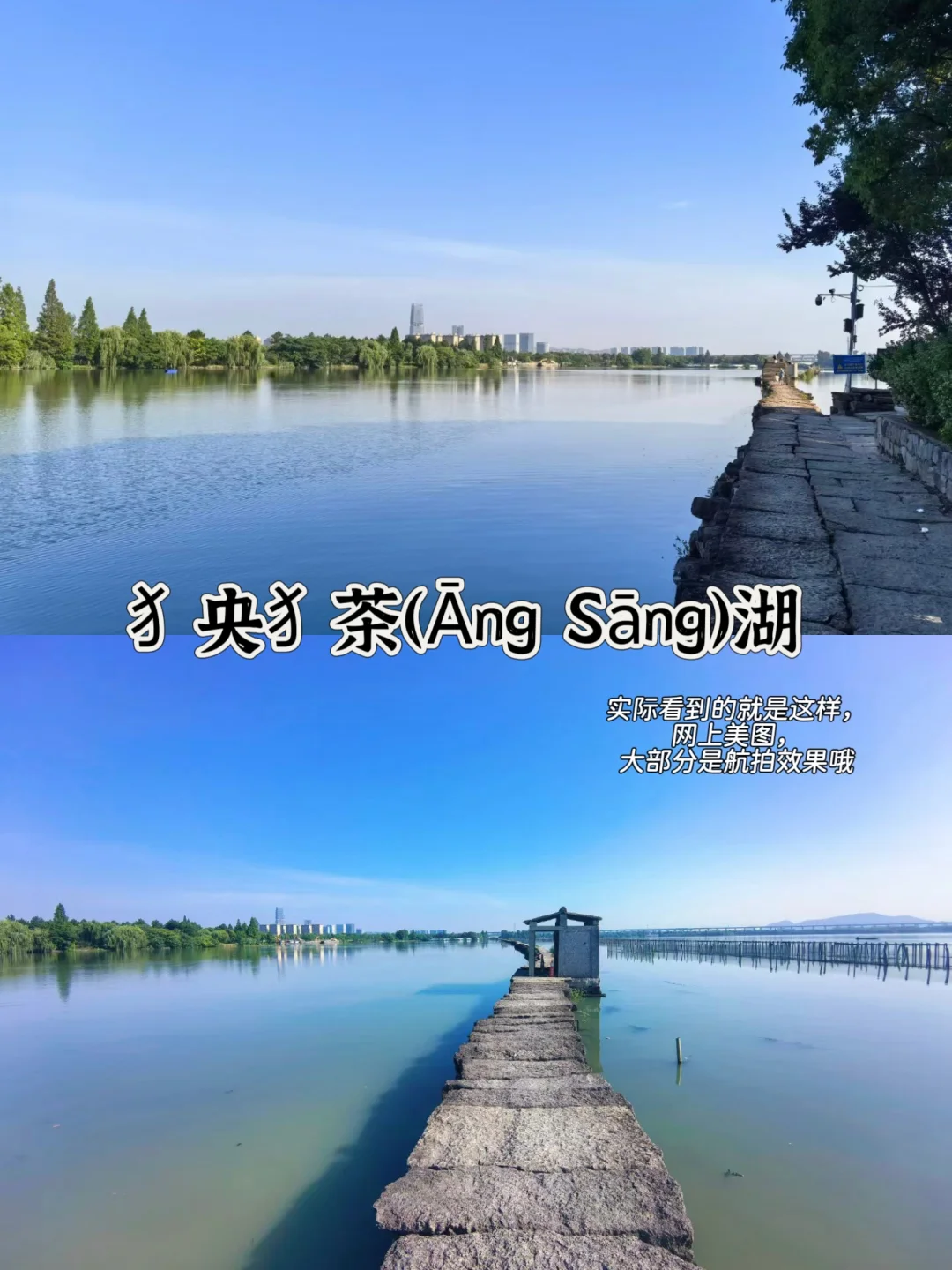 蓝色的湖面上,一条纤细的古道,独属江南的美,航拍更出片