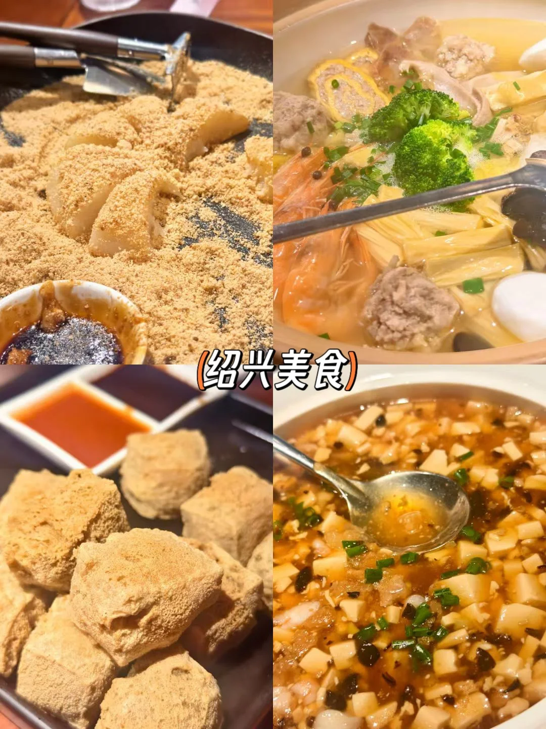绍兴臭豆腐、黄酒奶茶、茴香豆、香饽饽、次坞打面、奶油小攀、木莲冻、寻宝记绍兴菜