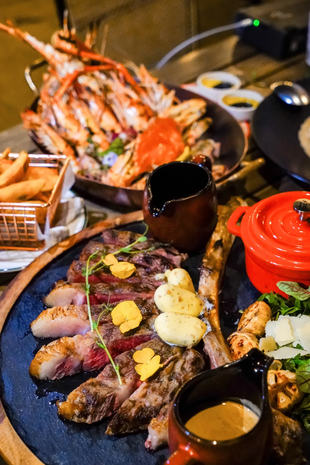 富国岛我们入住了新世界酒店,三餐基本都在酒店内解决。其中LUA餐厅,个人认为是全酒店的Best啦!~ . 🌟LUA Grill & Bar . 意大利餐,融合地中海风味,现场炭火烹饪,每一道菜都很不错呢!~ 餐厅就在主泳池旁,我们选择了室外用餐,室内开放式厨房,可以去观摩制作现场,挺有趣的。 . 我们点了当月的特别推介,烤海鲜拼盘以及烤牛扒。作为海鲜狂,菜单只要有海鲜,那是必点海鲜try try,毕竟来海岛就要吃海鲜啊❗️ . 🦞烤海鲜拼盆 小青龙+大虾+蚝+小鱿鱼,份量足,2个人吃妥妥的,烤得很鲜味,推荐 🥩烤牛扒 份量更足,4/5个人吃都妥妥的,马上开吃鲜嫩好吃,两个巨型主食一起吃肯定是过多的😂,后面我们打包回去了(别墅有living room,和睡房分开) 🌟杂菌意大利饭 黑松露味很浓郁,好吃!推荐 🍮布丁 酸酸甜甜,饭后来一个,很解腻 . Anyway~ 这一顿我们吃得很满足,totally的扶墙出,大概服务员也惊讶我们俩个人点那么多😂。推荐👍 .