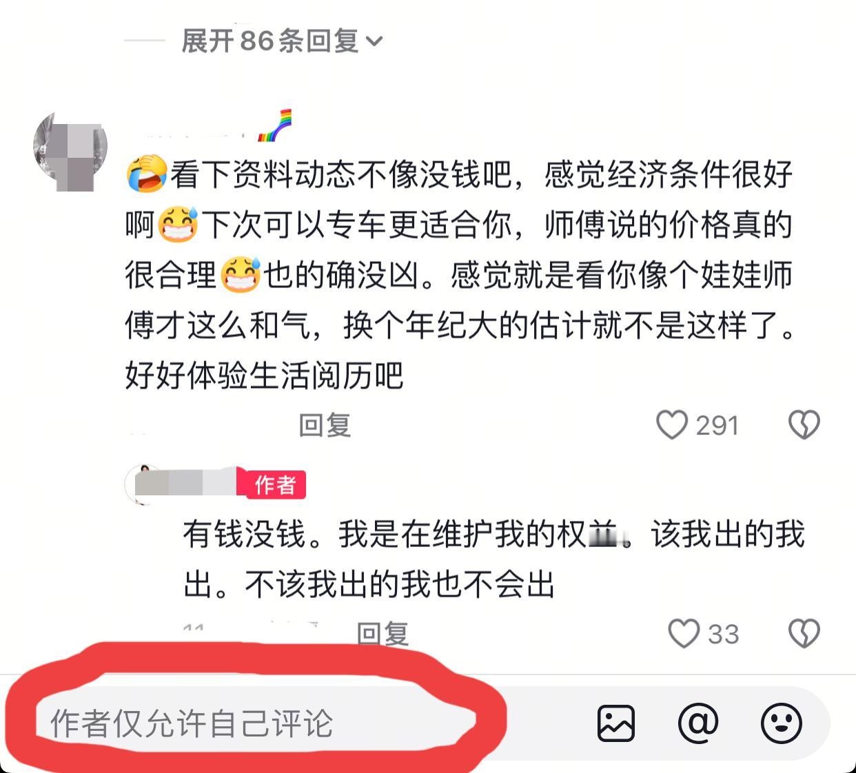 近日一位姑娘打顺风车从福州到平潭,结果路途中被司机骂哭,本想着发视频曝光司机,结果自己开启了评论防护! 事情是这样的,车上不单单只拉着姑娘一人,还有一对母子,司机说高速费总共65元,让这位姑娘出30元,但姑娘不同意,说要按人头算,平摊费用,每人出21块,就因这事和司机争执了起来! 但视频中司机就重复说了几句“第一次见到女孩子这么凶的”,也是司机第一次说出这句话时,这姑娘开始哭的!除了这句话司机并没有说什么太过分的话和辱骂什么的,就一直和她理论讲道理,还说了姑娘你可以不坐的! 但这姑娘发出视频后控诉司机骂人、嫌她行李箱太大、费用协商不成还让她下车! 视频发出后,多数网友认为视频是被剪辑了,姑娘把自己发脾气的片段给剪掉了,多数网友认为司机没问题,小孩不按成人标准收费,那对母子出35,姑娘出30,挺合理的!而且司机也已经很耐着性子的和姑娘沟通了! 对此大家怎么看,是按姑娘说的平摊合理,还是按司机说的30、35合理?