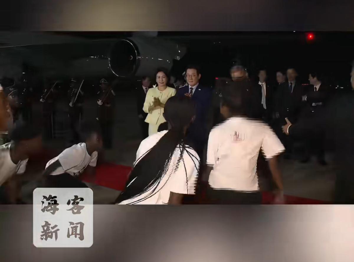 李在明夫妇抵达南非机场,一名少年突然冲出带头热舞 夫人金惠景被吓到躲在李在明身后