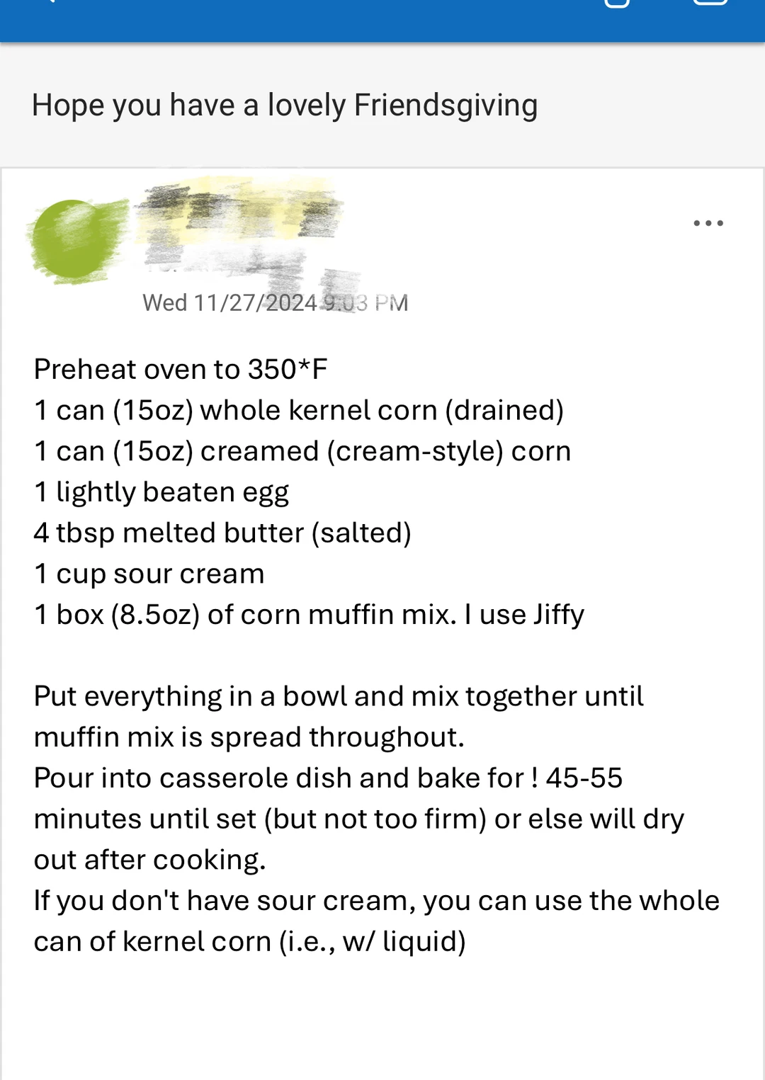 从同事那里讨到了他每年感恩节都必定会烤的Corn Souffle一定要把食谱分享给大家!