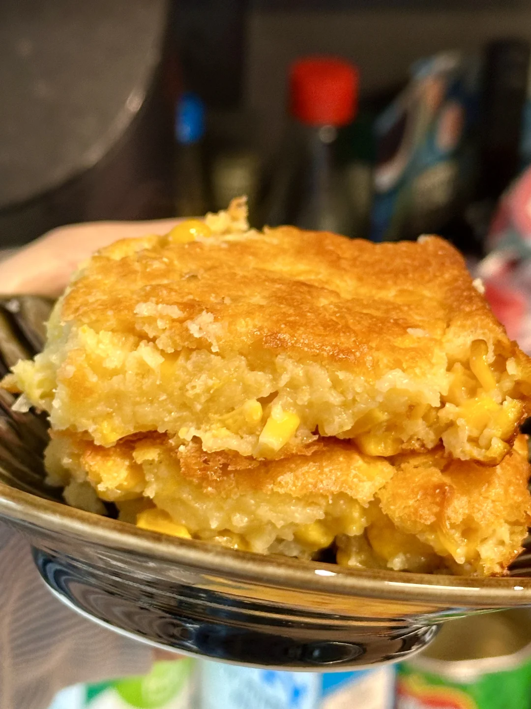 虽说叫玉米舒芙蕾,但并不是那种经过严格打发的法式舒芙蕾,而是一个经典的感恩节side dish,食材和做法有点像corn bread,但没那么干噎扎实。