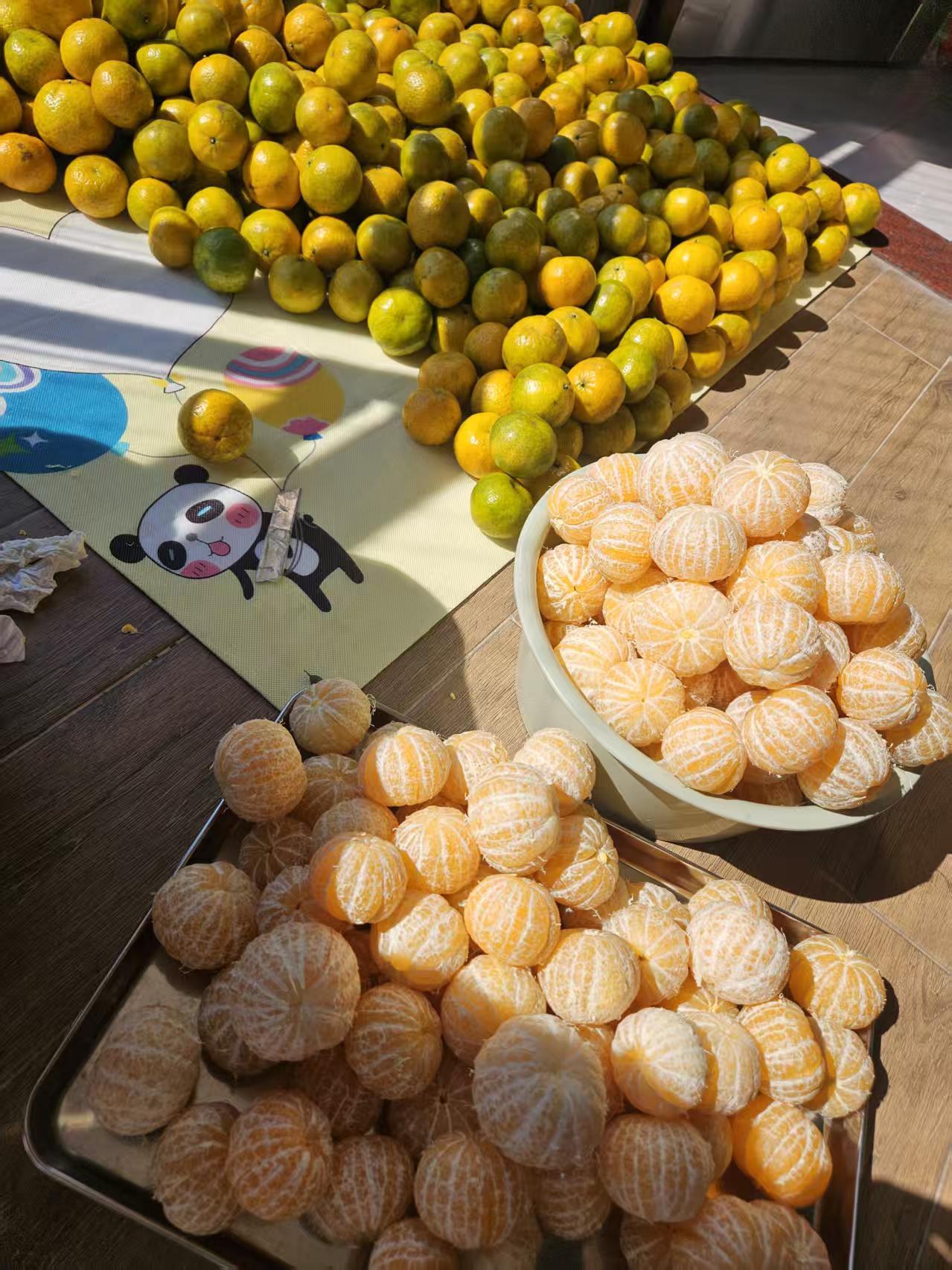 夫人就是喜欢捣鼓这些要动手和废些精力的活,昨天从江门新会采摘的,用来做陈皮。果肉送周围亲朋吃,也还蛮甜的。 陈皮水我自己喝过,淡淡的甜,很喜欢。 关键是,夫人开心。 非广告:分享一下生活。