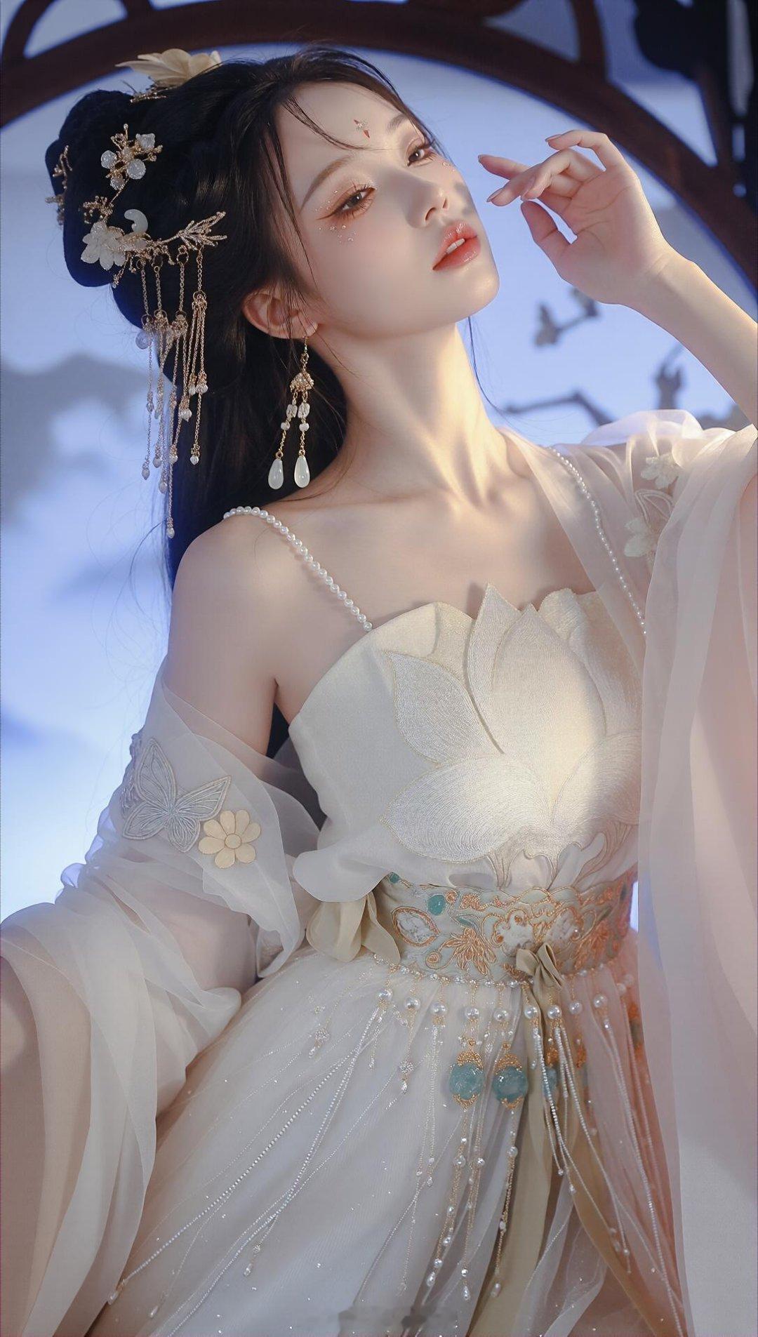 轻倚朱窗,眉目含情。淡雅长裙,尽显闺秀温婉。用镜头,留住这份古典的柔美与娴静。