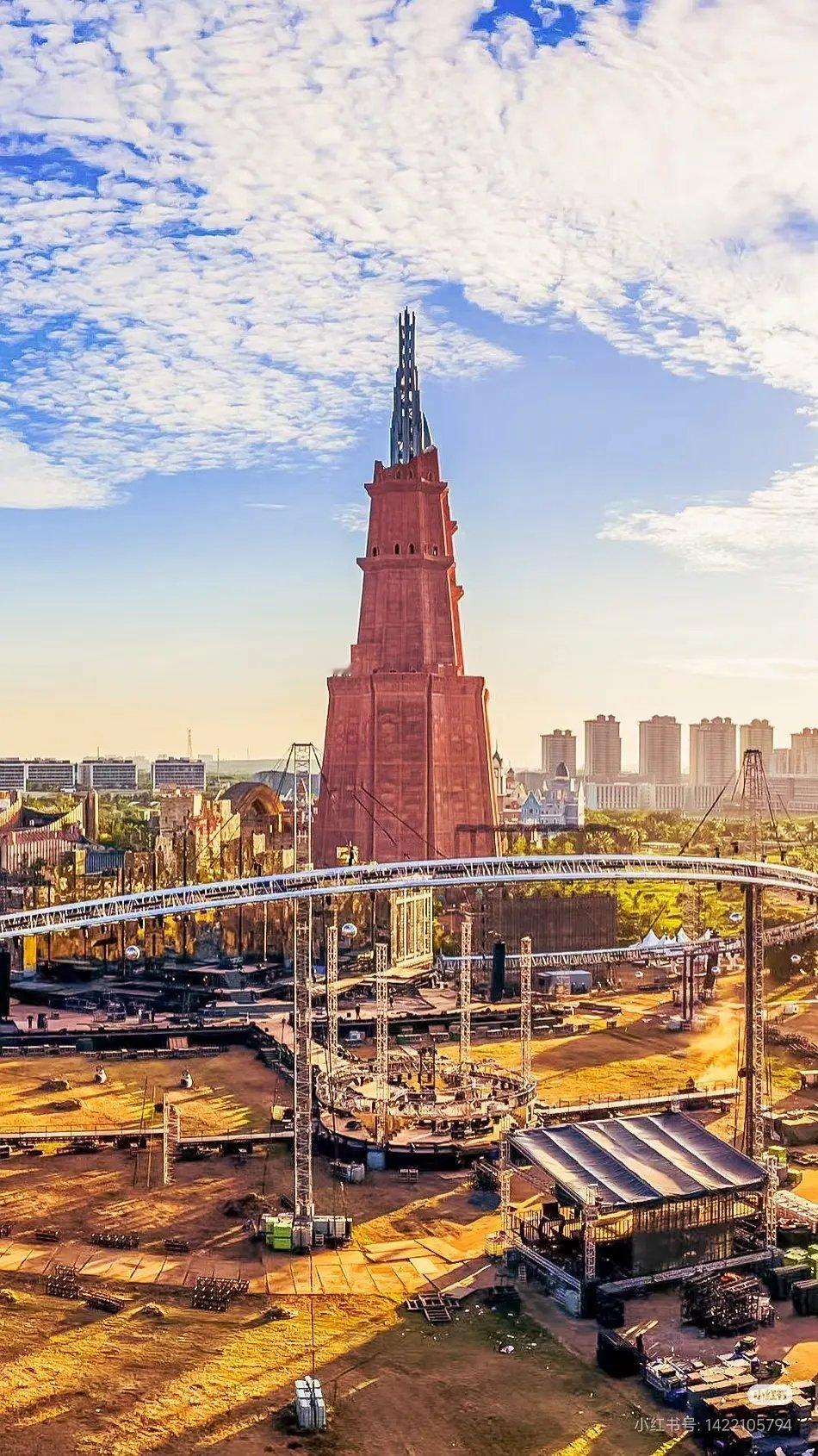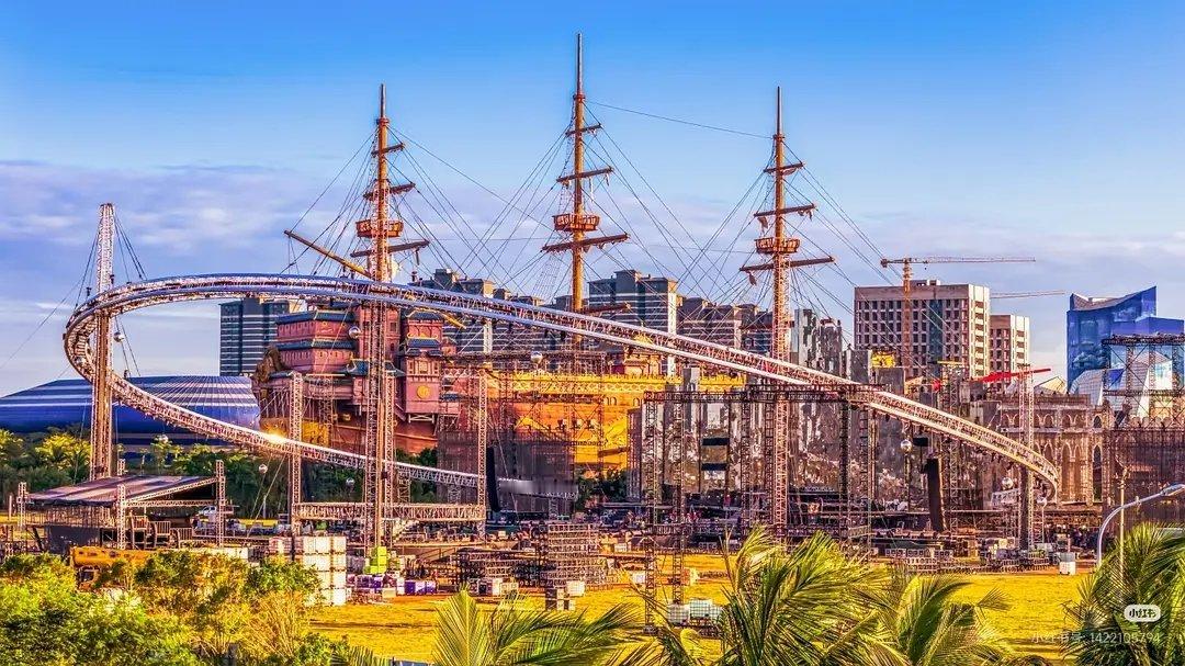 包游乐场开演唱会好梦幻啊是正在搭建的华晨宇海口乐园场演唱会!舞台跟乐园融为一体了