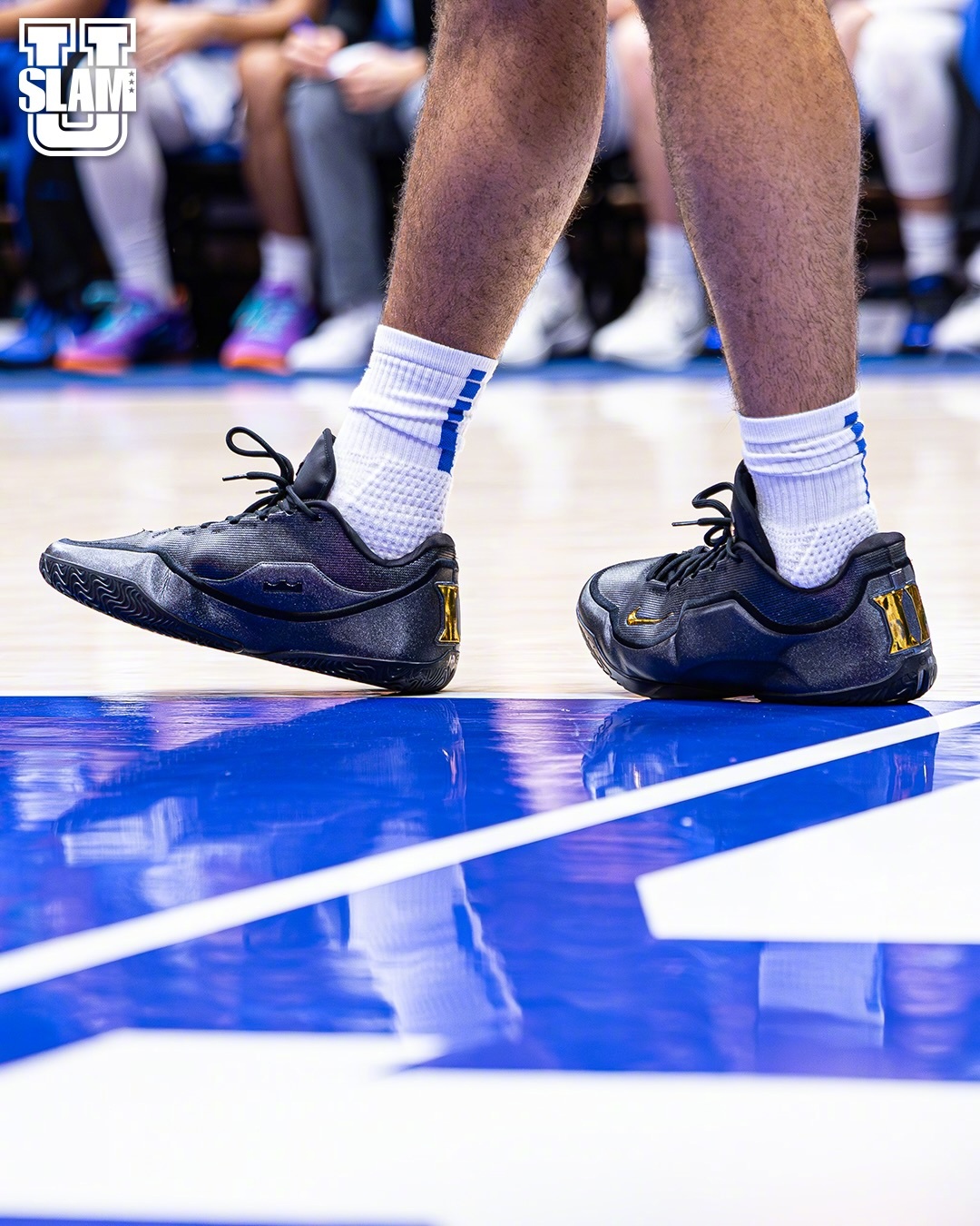 卡梅隆-布泽尔上脚了杜克专属的LeBron 23 PE,后跟一个代表杜克的大大“D”字母。