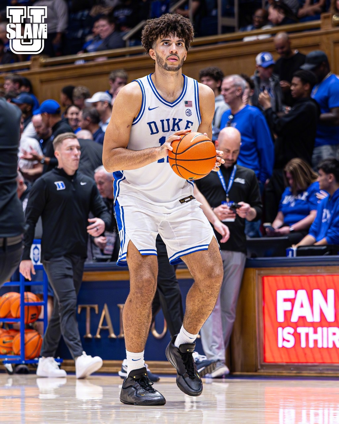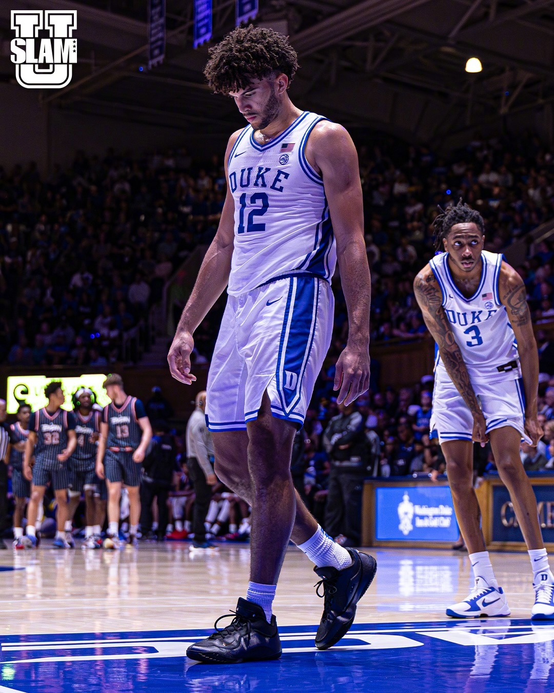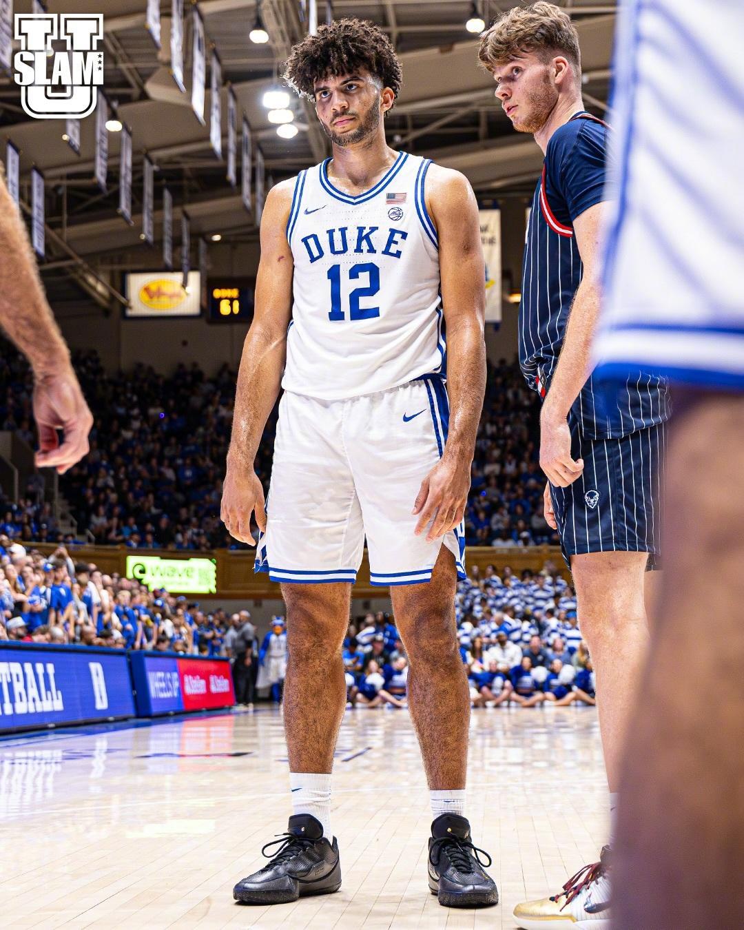 卡梅隆-布泽尔上脚了杜克专属的LeBron 23 PE,后跟一个代表杜克的大大“