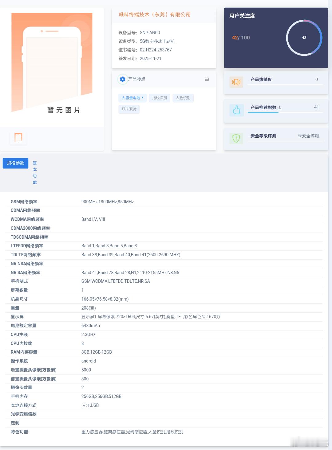 WIKO新机(华为智选)工信部配置曝光,采用6.67英寸720P LCD屏幕,可能搭载骁龙4 Gen2处理器,6480mAh电池,8.32mm厚,208g重。还有高手……