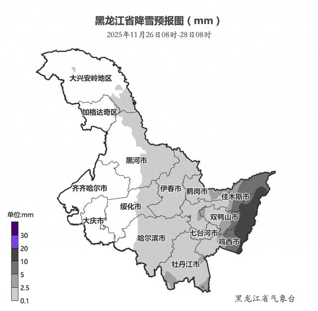 黑龙江省2025年11月26日8时-11月28日8时累计降雪量预报图