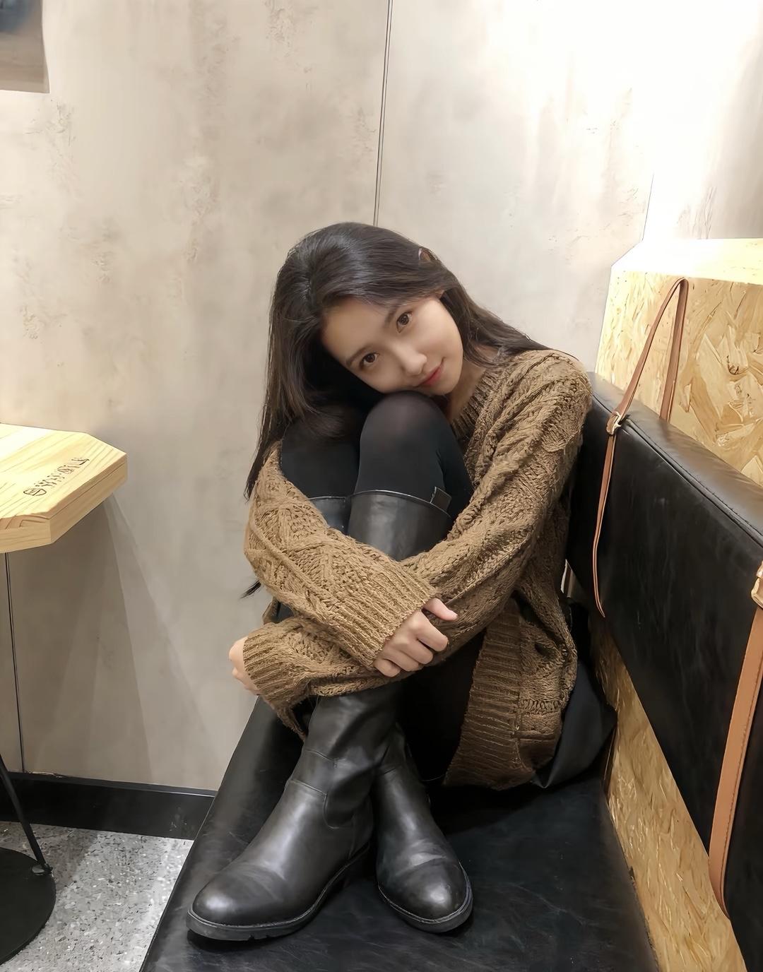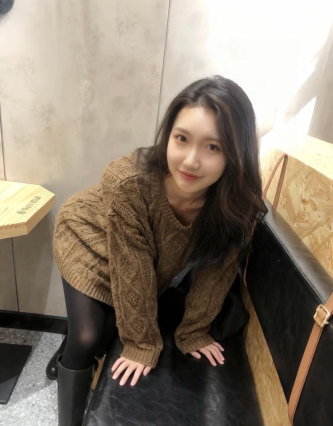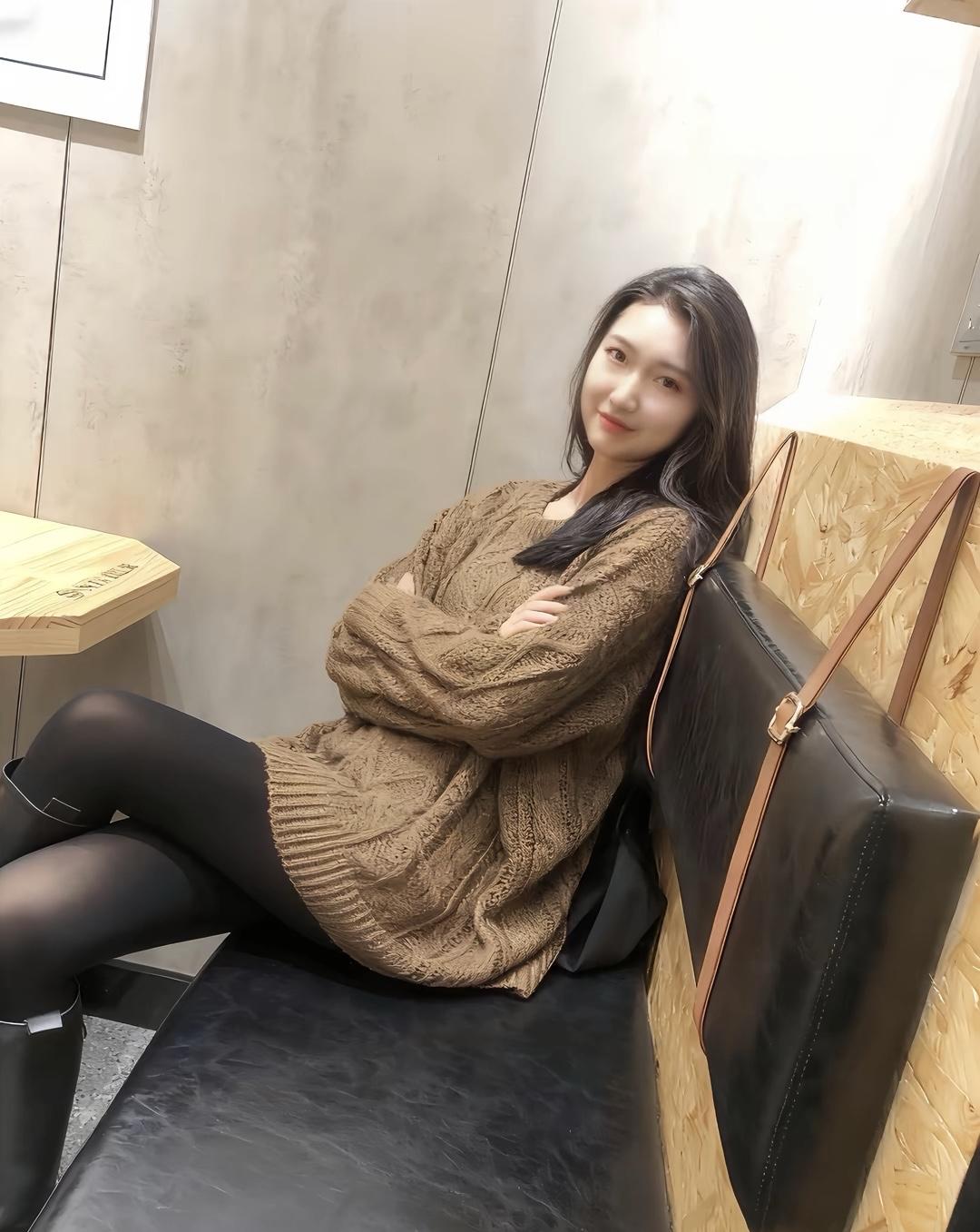 毛绒毛衣+微喇白色牛仔裤=温柔到发光