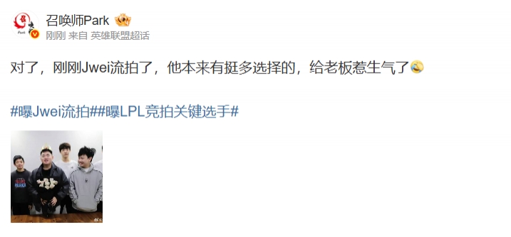 耍大牌?爆料人:刚刚Jwei流拍了,他本来有挺多选择的,给老板惹生气了