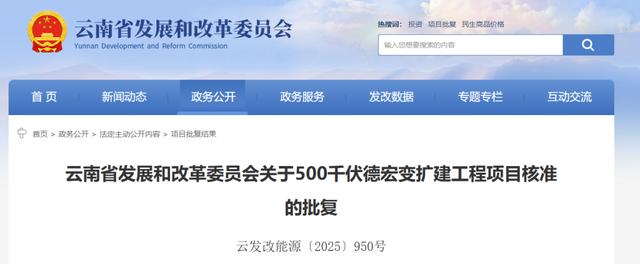 云南省发展和改革委员会关于500千伏德宏变扩建工程项目核准的批复