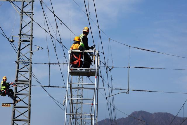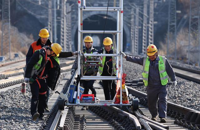 空旷的唐包铁道线上,寒风裹挟着山涧潮气呼啸而过,给高空作业增添诸多难度。身系安全带与保护绳的铁路工人悬于接触网间,要在每次近3小时的“天窗”时段内,在冰冷的接触网上展开“地毯式”检修,高效处置设备缺陷,彻底消除各类安全隐患。