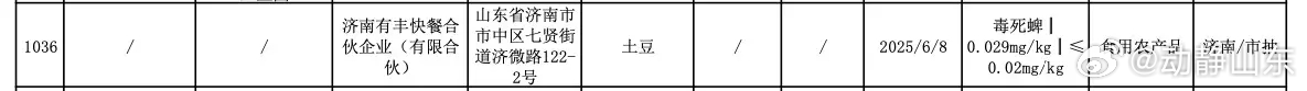 超意兴济南一门店被检出土豆农残超标近日,济南市市场监督管理局发布最新一期济南市食品安全监督抽查信息通告,显示济南知名餐饮连锁品牌超意兴一门店的土豆被检测出农药残留物超标的情况。通报显示,位于济南市市中区七贤街道济微路122-2号的济南有丰快餐合伙企业(有限合伙)被抽检的土豆存在农药毒死蜱超标的情况,被检产品毒死蜱含量为0.029mg/kg,而标准值要求不得超过0.02mg/kg。百度地图显示,该地址的商户为超意兴快餐(依山新居店)。企查查显示,济南有丰快餐合伙企业2019年成立,2024年11月之前曾用名为济南有丰超意兴快餐合伙企业,执行事务合伙人是济南鸿智餐饮管理合伙企业,而济南鸿智与超意兴餐饮集团有限公司实控人、总经理张超存在关联关系。据了解,超意兴是山东规模最大的餐饮连锁企业之一,由张超创立,截至2025年,超意兴在全国拥有超700家分店,覆盖山东、北京、天津、河北等5省市。超意兴在其网站介绍,公司进行了供应链创新,建立"从田间到餐桌"的全链条食安体系:12道原料检测工序、36项生产工艺标准、ISO22000认证中央厨房、全程冷链配送。与50+家绿色种植基地建立战略合作,实现食材可追溯率100%。今年10月,超意兴部分门店曾因卫生管理问题引发关注并整改。据华商报报道,有网友发布关于超意兴服务员用标有“筷子桶”的桶装水擦桌椅的视频引发舆论关注。涉事店值班负责人此后回应称已发现问题,正在进行整改。(文|导报财经组)来源:山东财经报道
