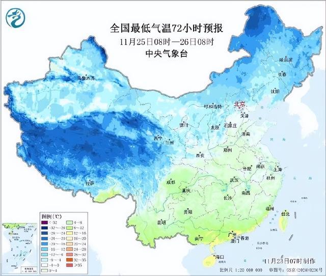 中央气象台预计,11月23日至25日,较强冷空气将自西向东影响我国中东部地区,将带来4~8℃降温,北方局地降温可达10~12℃,并伴有5~7级偏北风,局地阵风8~9级,西北地区、华北北部及东北地区等地有小到中雪,甘肃祁连山地区、内蒙古中部等地局地有大雪。此外,25日至27日,又一股较强冷空气自西向东影响我国,中东部大部地区将有4~8℃降温,部分地区降温10~12℃。西北地区、华北北部及东北地区有小到中雪或雨夹雪,其中,东北地区东部部分地区有大到暴雪。