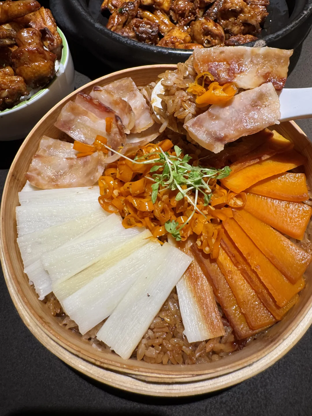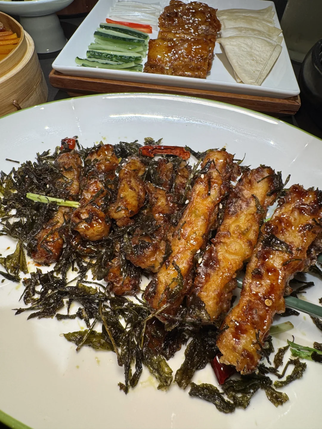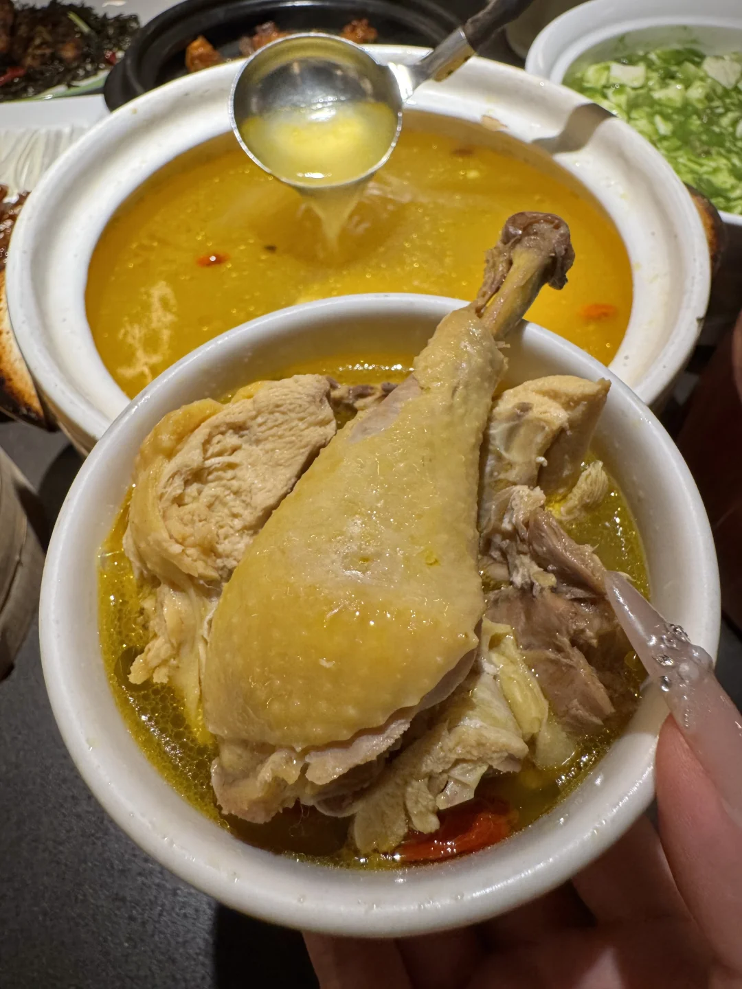 就在西湖边!!杭州朋友推荐的杭帮菜餐厅!!每次请朋友来杭必去吃都有被夸~~ 笋干神仙鸡汤✔️鸡肉鲜嫩肉质紧实!笋干脆爽,汤汁浓郁,真的ju鲜美~ 秘制茶香排骨✔️以茶入菜!!都是大块仔排,一嗦脱骨!咸甜还带着淡淡茶的清香,嘎嘎好吃!! 秘制脆皮卷饼肉✔️脆皮ju酥脆!肥瘦相间的五花肉搭配饼皮香的🤤