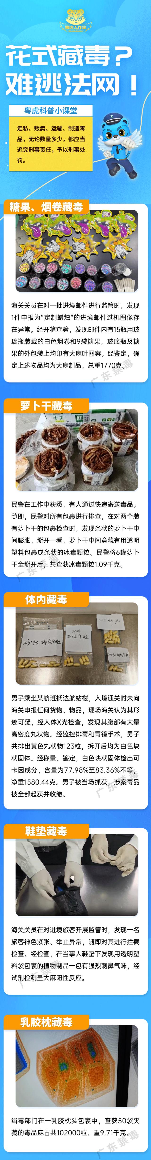 不法分子为了藏毒、运毒,尝试将毒品藏到,各种常见物品中,如玩具、零食、化妆品等,妄图瞒天过海,但终究还是逃不过缉毒人员的火眼金睛。