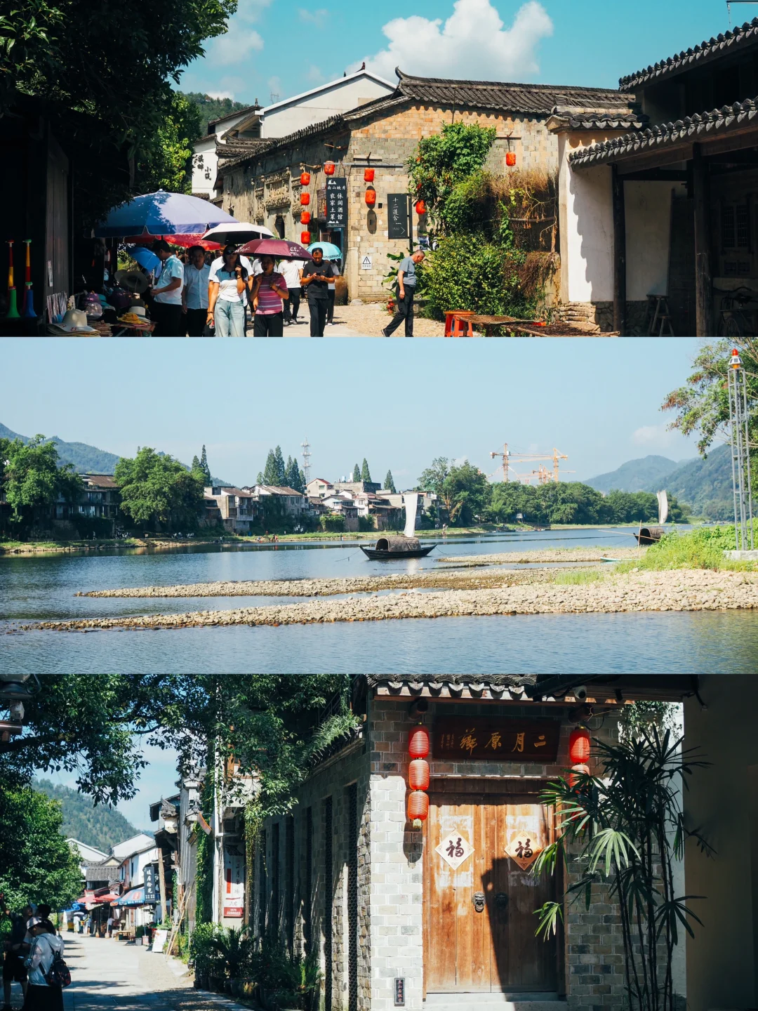 👉D2:码头坐船➡️堰头保定码头➡️沿江游步道➡️文昌阁➡️千年古樟树群➡️古堰老街➡️通济堰➡️汀步桥➡️码头游船返程