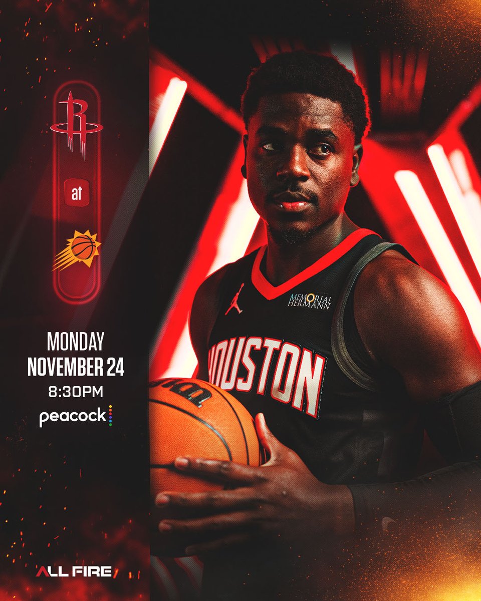 休斯顿火箭官方账号报道。深夜在菲尼克斯进行NBA常规赛对决。⏰开赛时间晚上8:30(北京时间11月25日上午10:30)📺NBC体育直播📻SportsTalk790电台/西班牙语KLTN102.9HD2📲火箭App实时更新