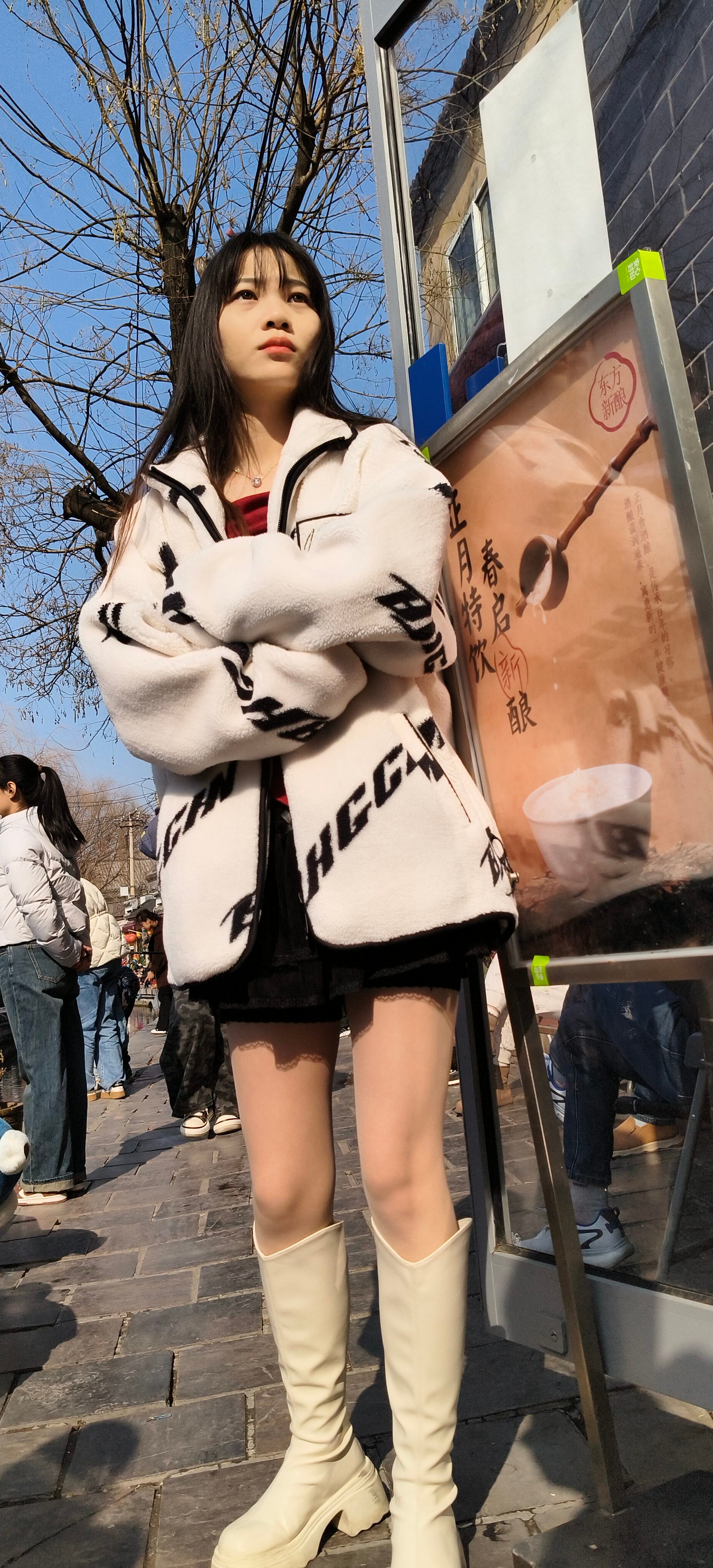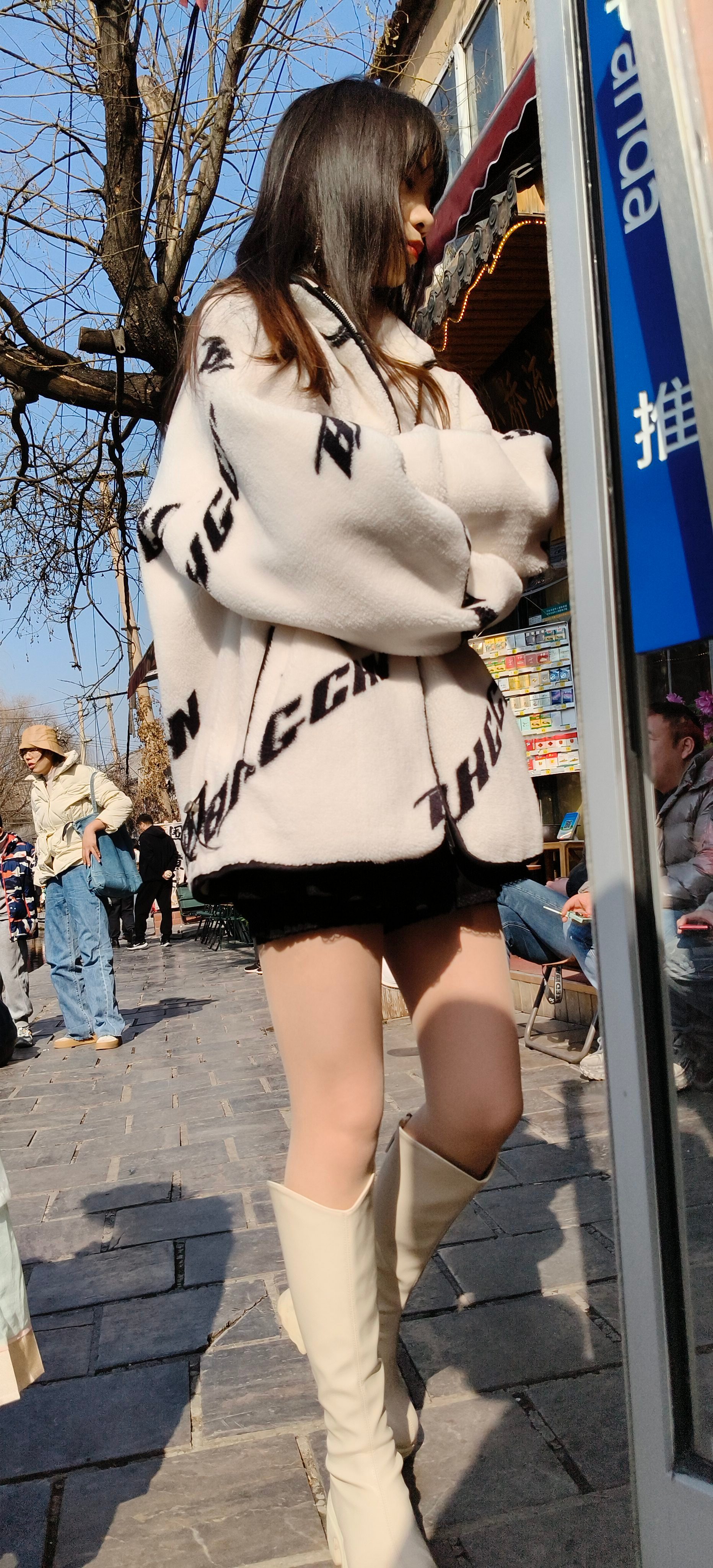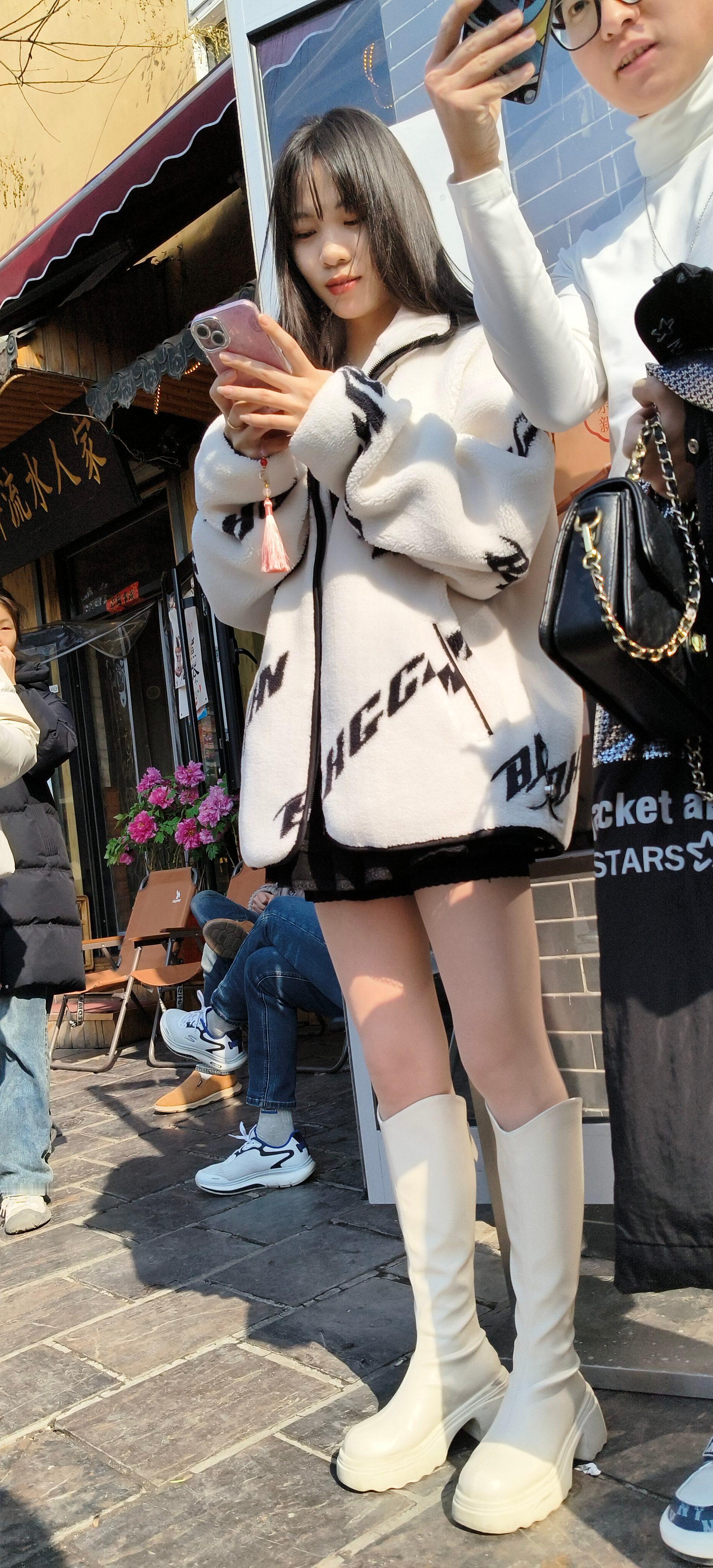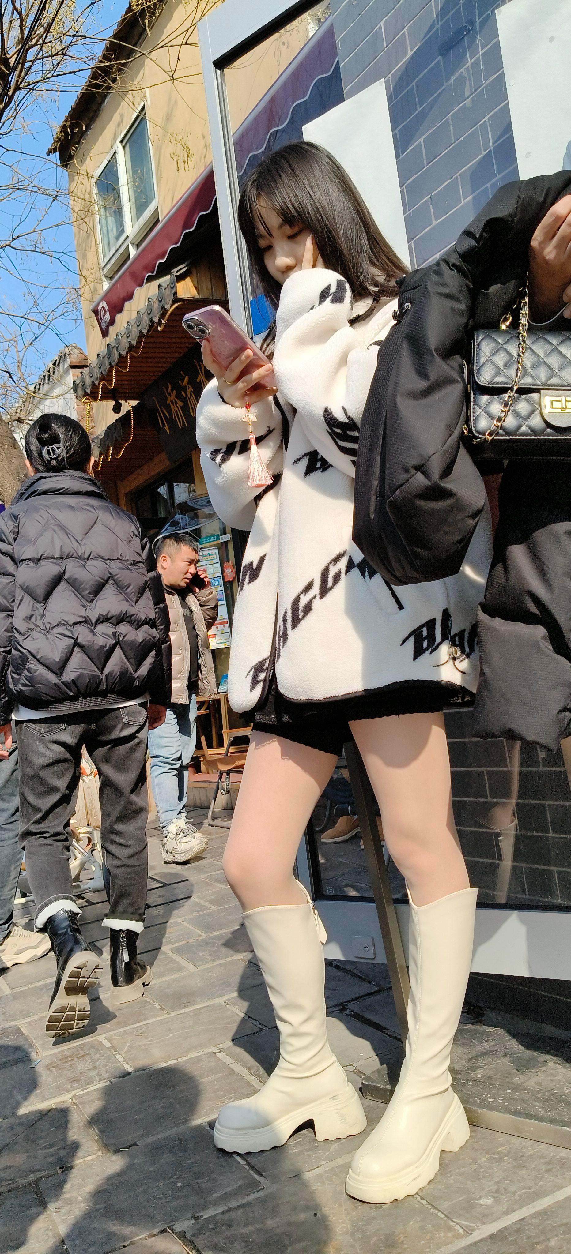 这身穿搭好可爱,毛绒靴子很吸睛!