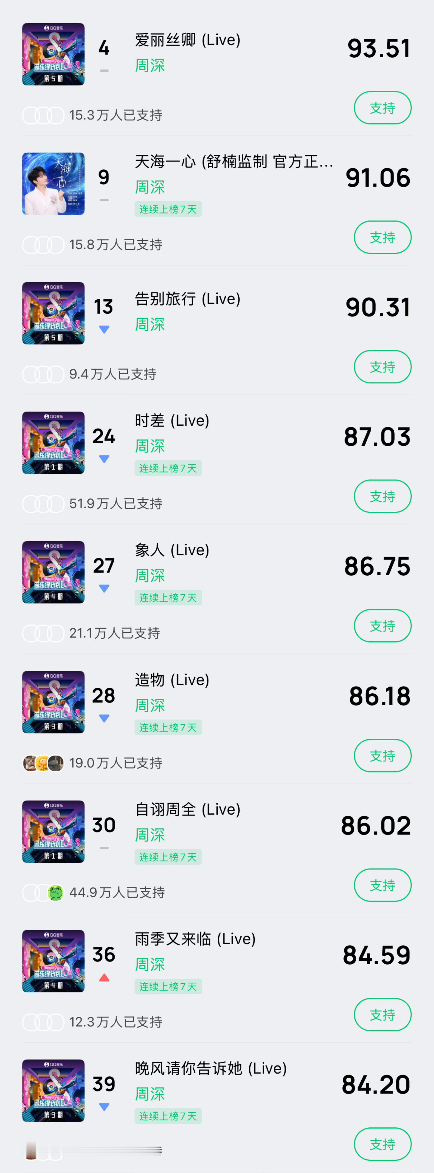 📣 11.24 巅峰潮流 📣米米们晚上好每歌做6个动作路径:Q音-乐馆-排行-潮流巅峰✅《爱丽丝卿(live)》✅《天海一心》✅《告别旅行(live)》✅《时差(live)》✅《象人(live)》✅《造物(live)》✅《自诩周全(live)》✅《雨季又来临(live)》✅《晚风请你告诉她(live)》完成『支持』让更多人听到深深