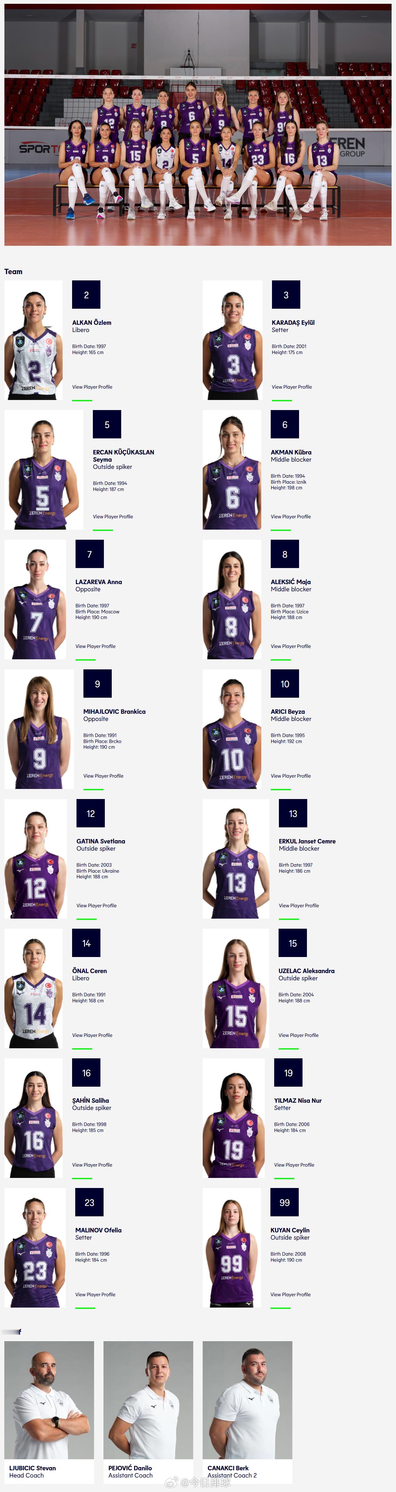 正赛小组赛第1轮本周上演,身处C组的意大利科内利亚诺将于北京时间26日(三)凌晨03:30在主场迎战土耳其泽仁体育。回国完成了全运会比赛任务的 已经回到阵中。对方队员名单中有中国球迷比较熟悉的阿克曼、拉扎列娃、阿列克西奇、米哈伊洛维奇、乌泽拉克、马利诺夫等名将。在本赛季 已经完赛的常规赛前7轮比赛中,泽仁体育5胜2负积15分排在瓦基弗银行、费内巴切和加拉塔萨雷之后,名列第四,加上欧冠的比赛不限制上场外援人数,实力并不容小觑。