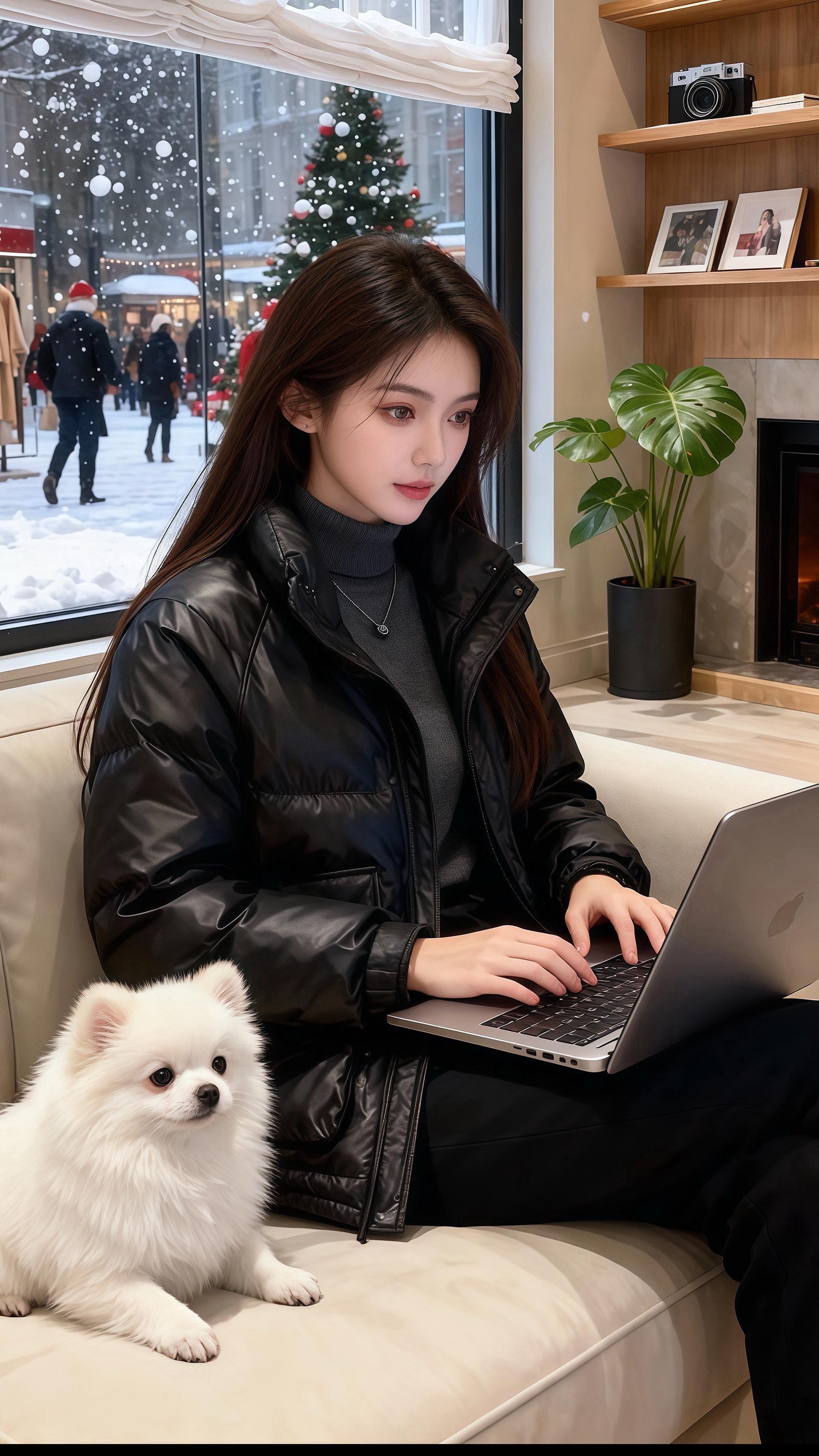 初雪漫过橱窗时,皓明在咖啡馆里撞见了许妍。 她裹着那件亮面黑羽绒服,领口松松搭着灰调高领,软而不塌的面料衬得肩线清润,口袋边的细带垂下来,添了点漫不经心的利落。同色长裤裹着脚踝,踩在浅绒地毯上,像把冬风都揉成了柔和的衬里。 许妍指尖勾着热拿铁,雾气漫过衣身的小标,连腕间的表链都浸了温软。皓明盯着她垂落的发梢——这一身不是堆砌的精致,是把冬日的冷都裹成了妥帖的温柔,像雪天里恰好落在掌心的暖。 后来许妍成了他窗台上的圣诞树,连这件羽绒服的光泽,都成了他每个冬天的执念。此刻她窝在沙发里翻杂志,亮面衣料映着壁