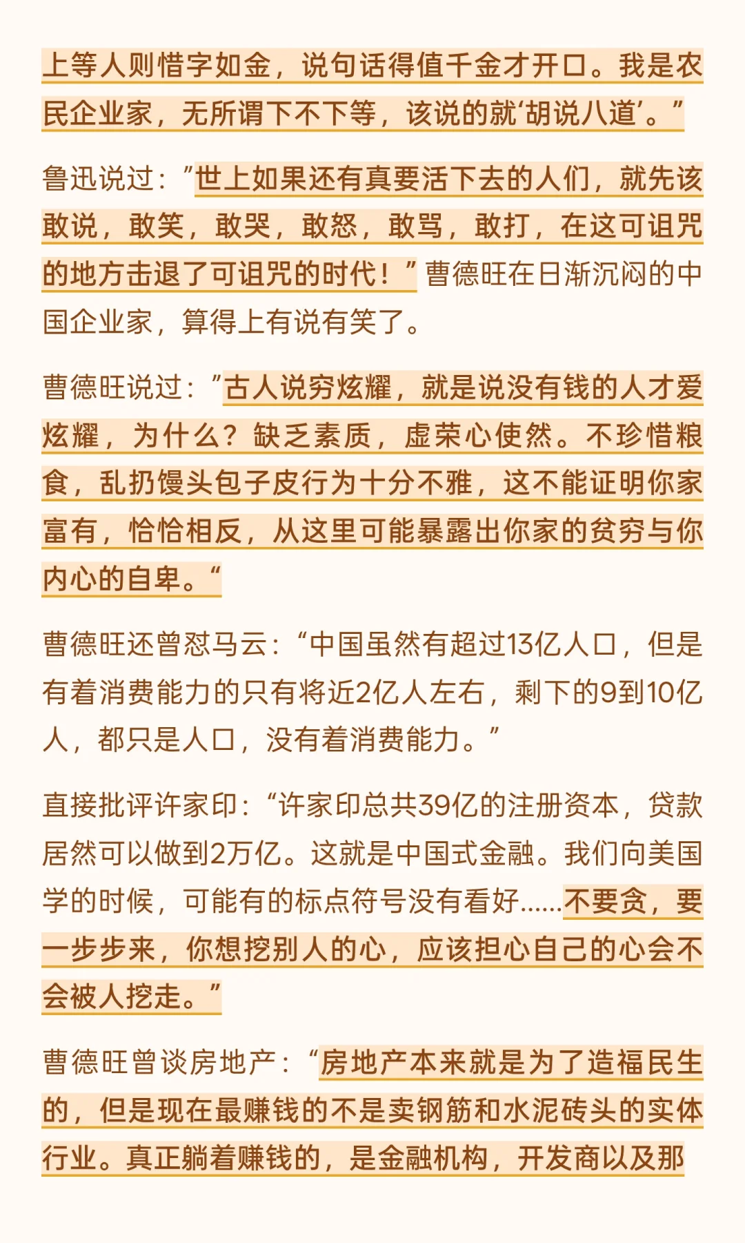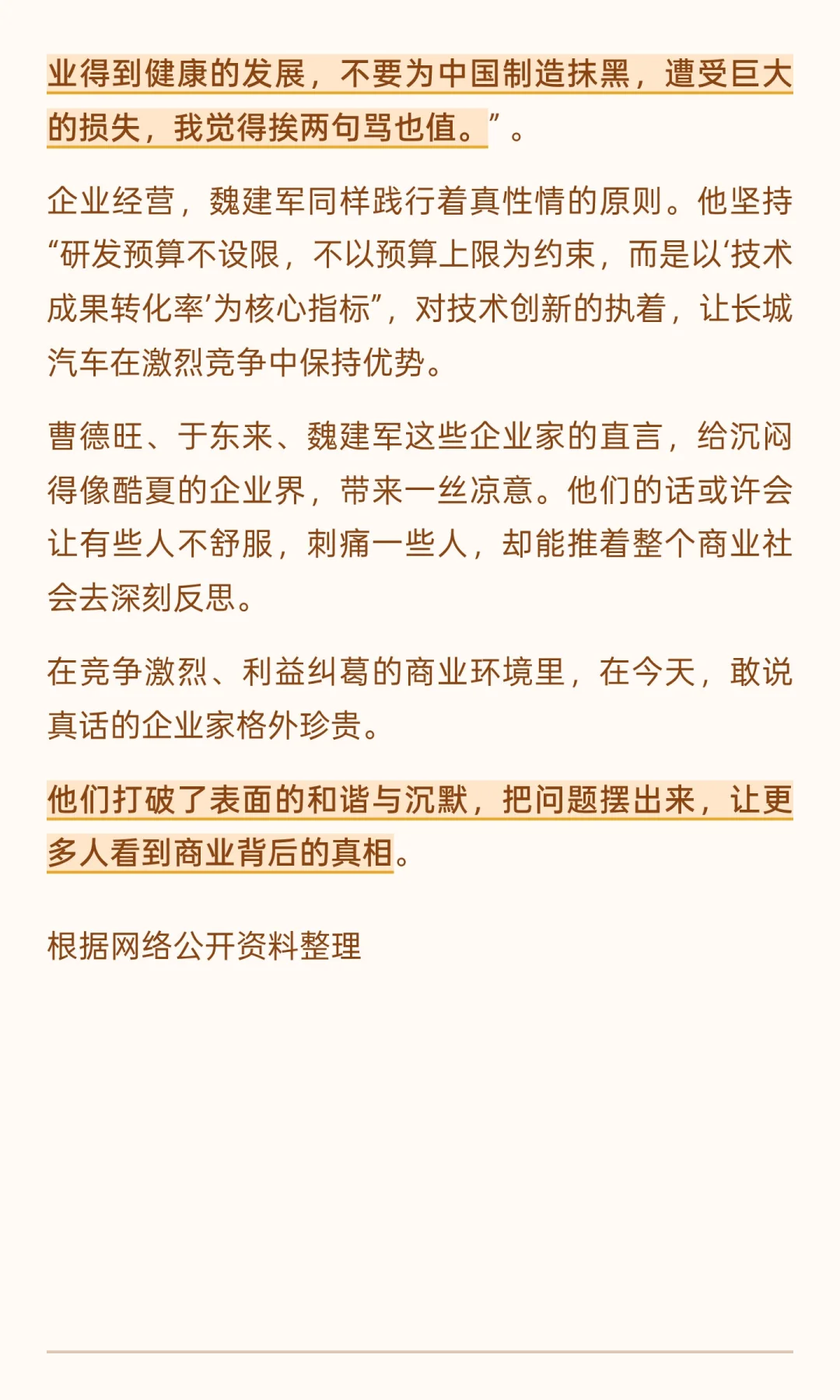 多数企业家谨言慎行,公开场合发言字斟句酌,生怕得罪人或引发争议,是能理解的。但总有“叛逆者”,敢于直言,曹德旺、于东来是代表。