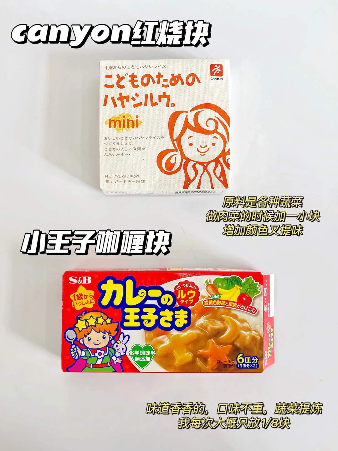 ☑️canyon宝宝红烧块:被经常问到的红烧块就是这个,这款调味料颜色看起来比较深但是味道很淡很淡,我煮菜会放一点增加颜色和食欲。