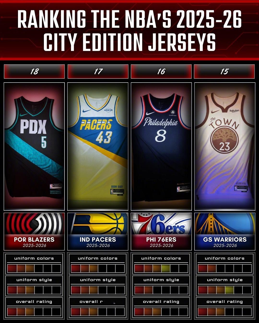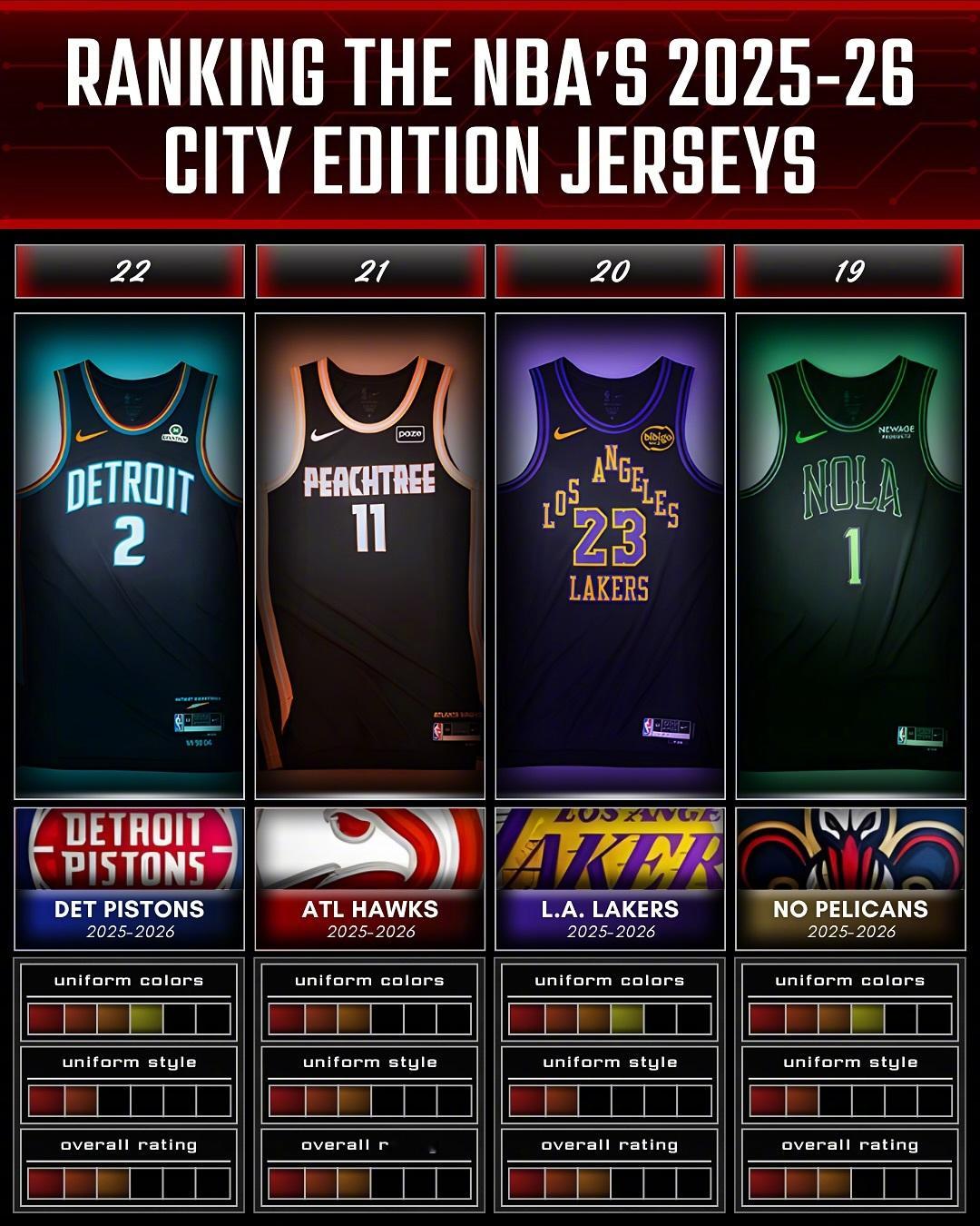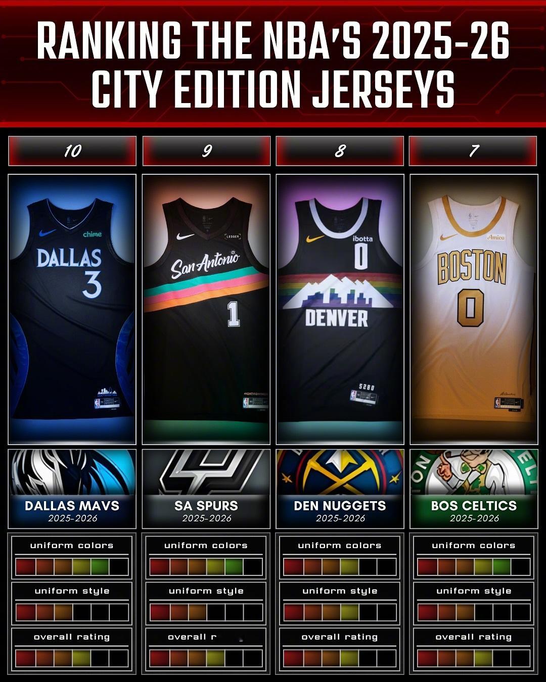 国外媒体对本赛季城市版球衣的颜值排名,最好看的是太阳和热火的吗?