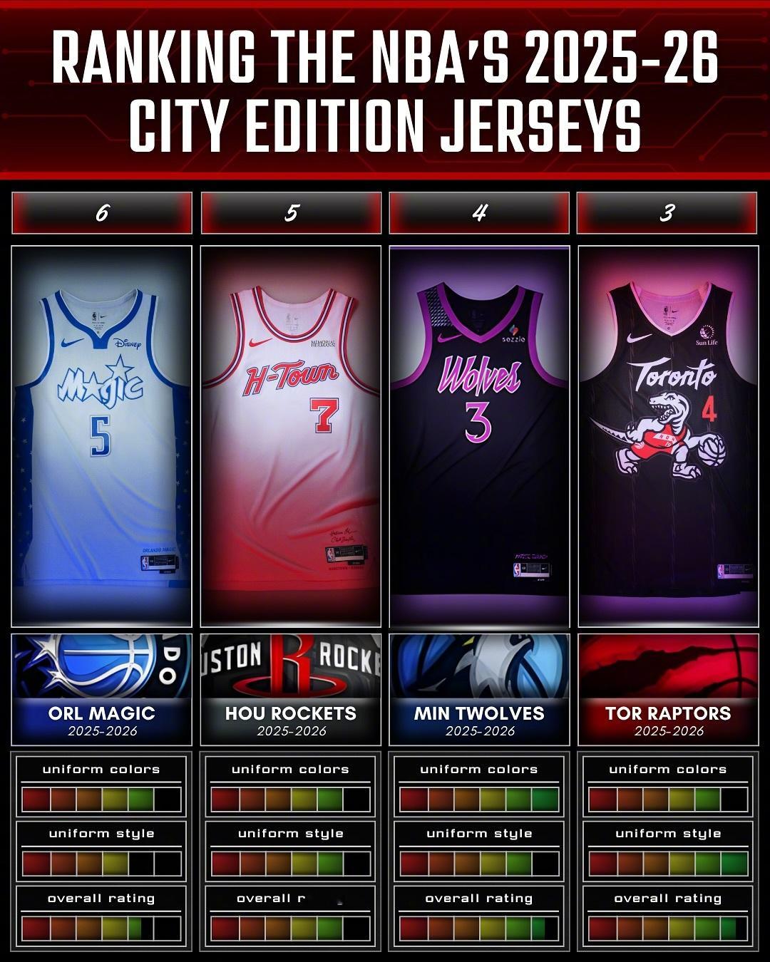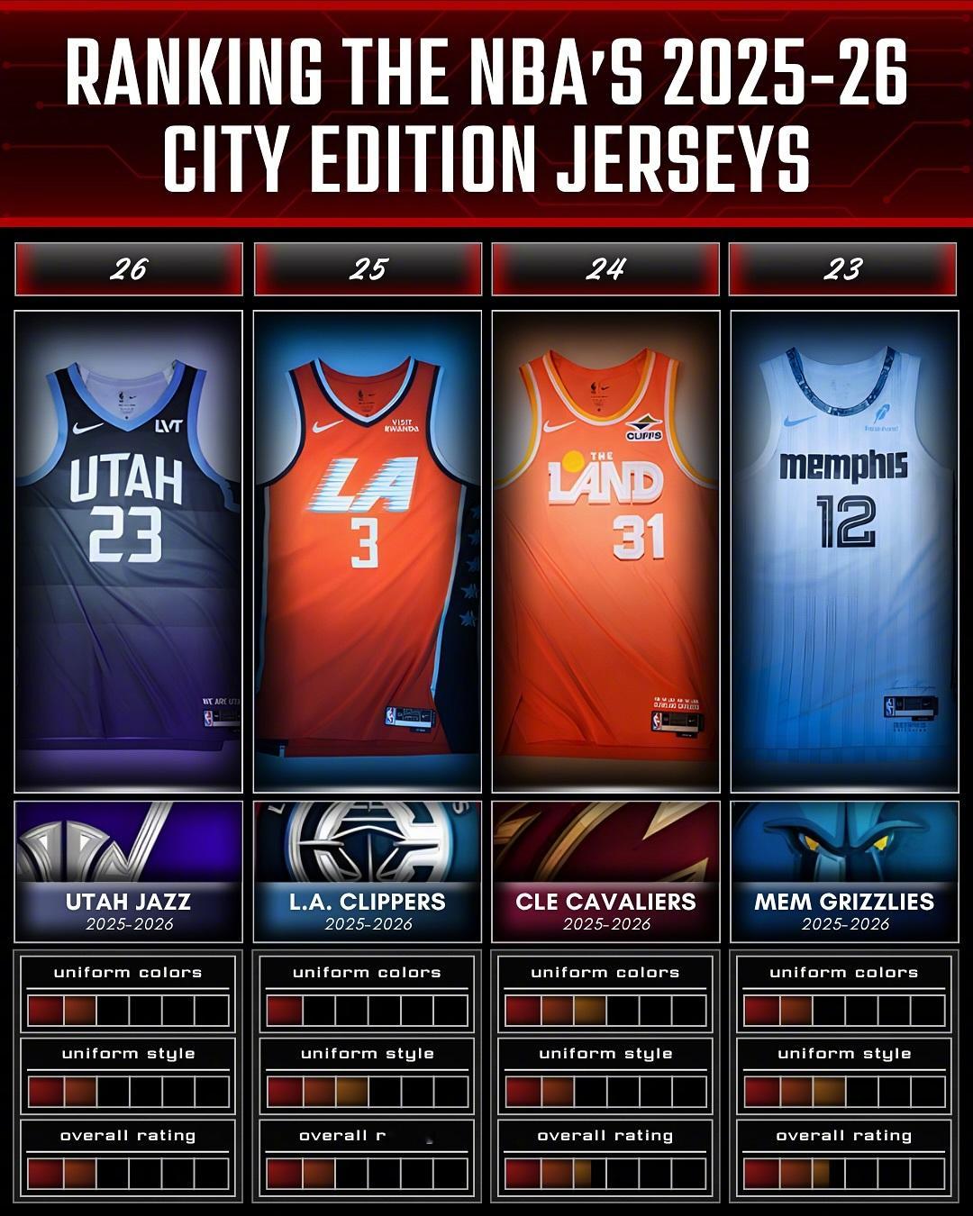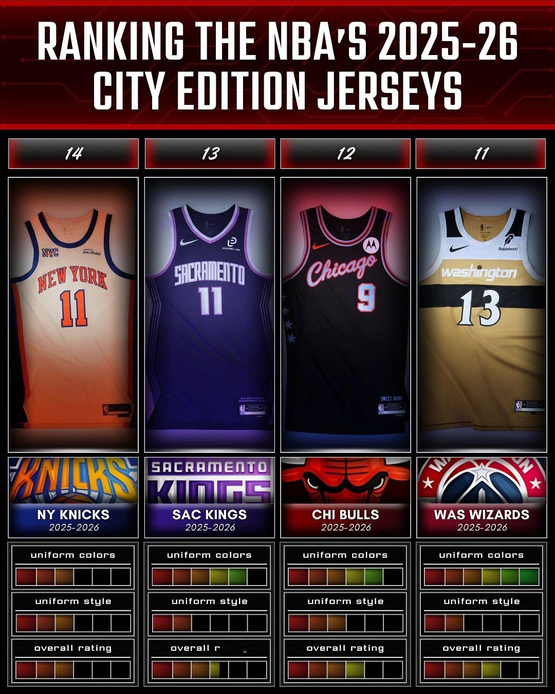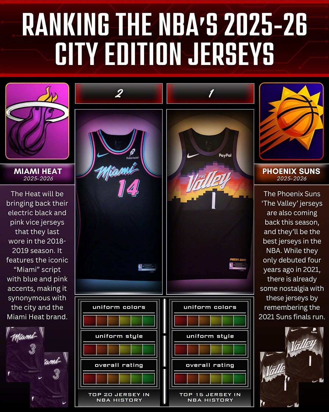 国外媒体对本赛季城市版球衣的颜值排名,最好看的是太阳和热火的吗?