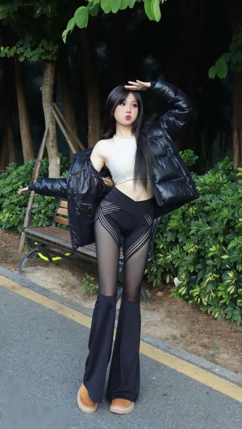 街拍每日穿搭美女时尚穿搭瑜伽裤<!...