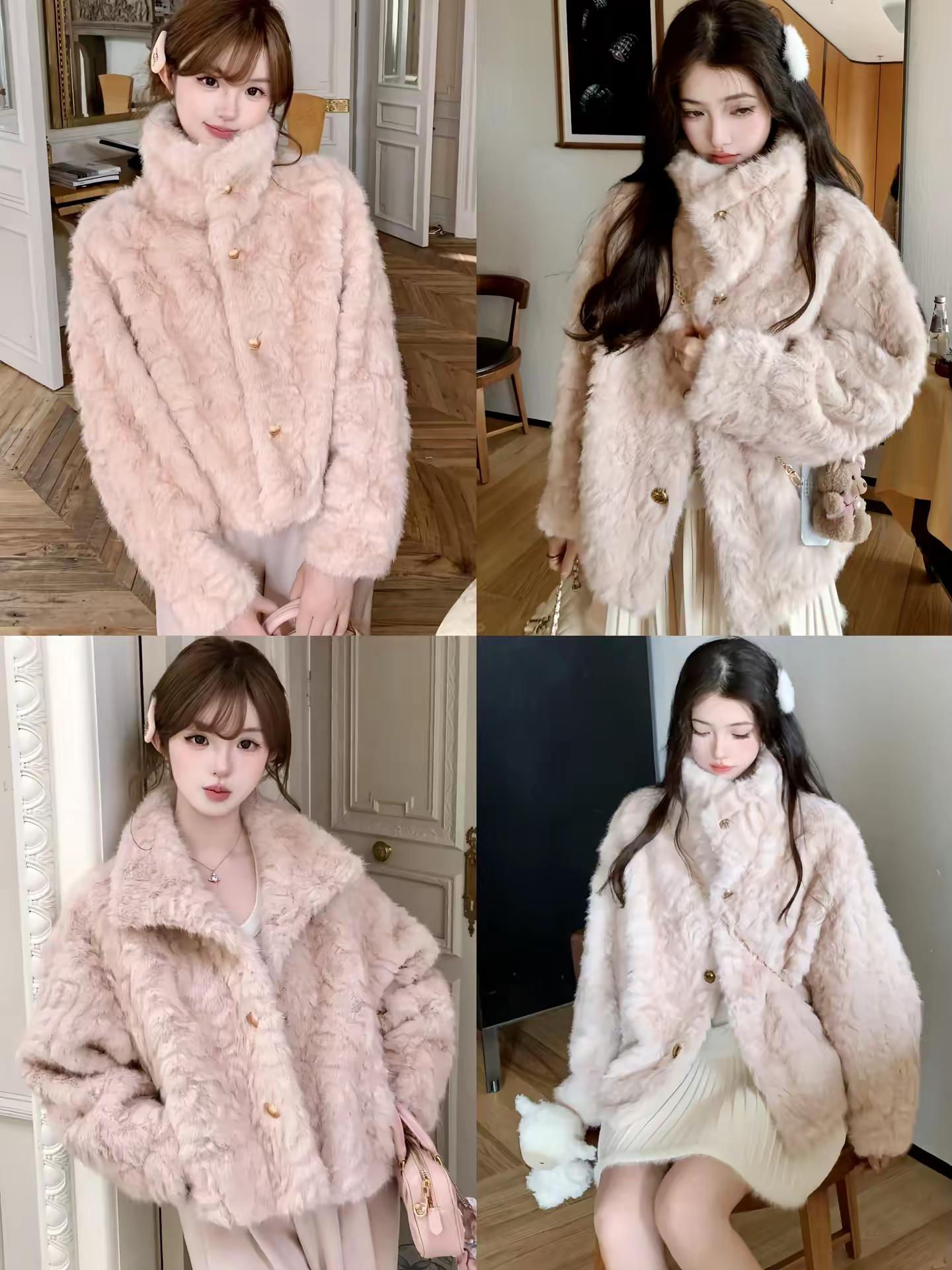 粉粉的毛茸茸外套,是小香风耶~名媛风 韩系穿搭 好看又高级 甜美穿搭 约会穿搭