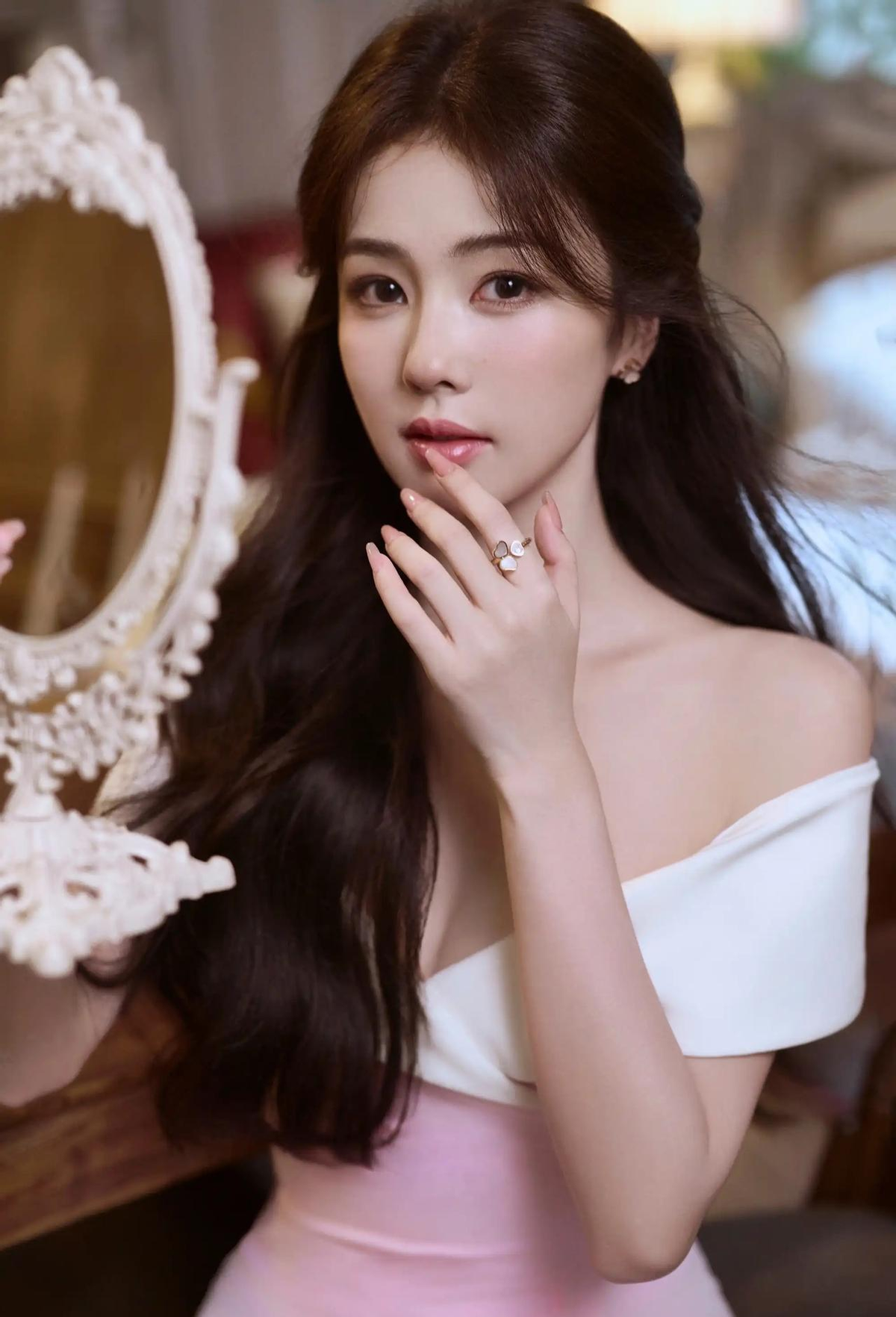 白鹿这身粉白裙,真不是一般美女能穿出来的。