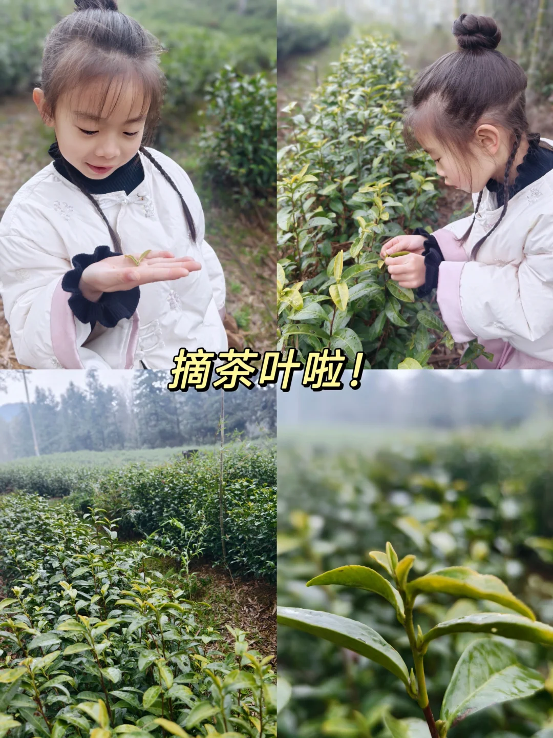 [二R]茶园采茶:民宿老 板自己的茶园,安吉白茶,不在高山上,适合孩子采摘体验。我们周末去的,茶叶还没完全冒出来
