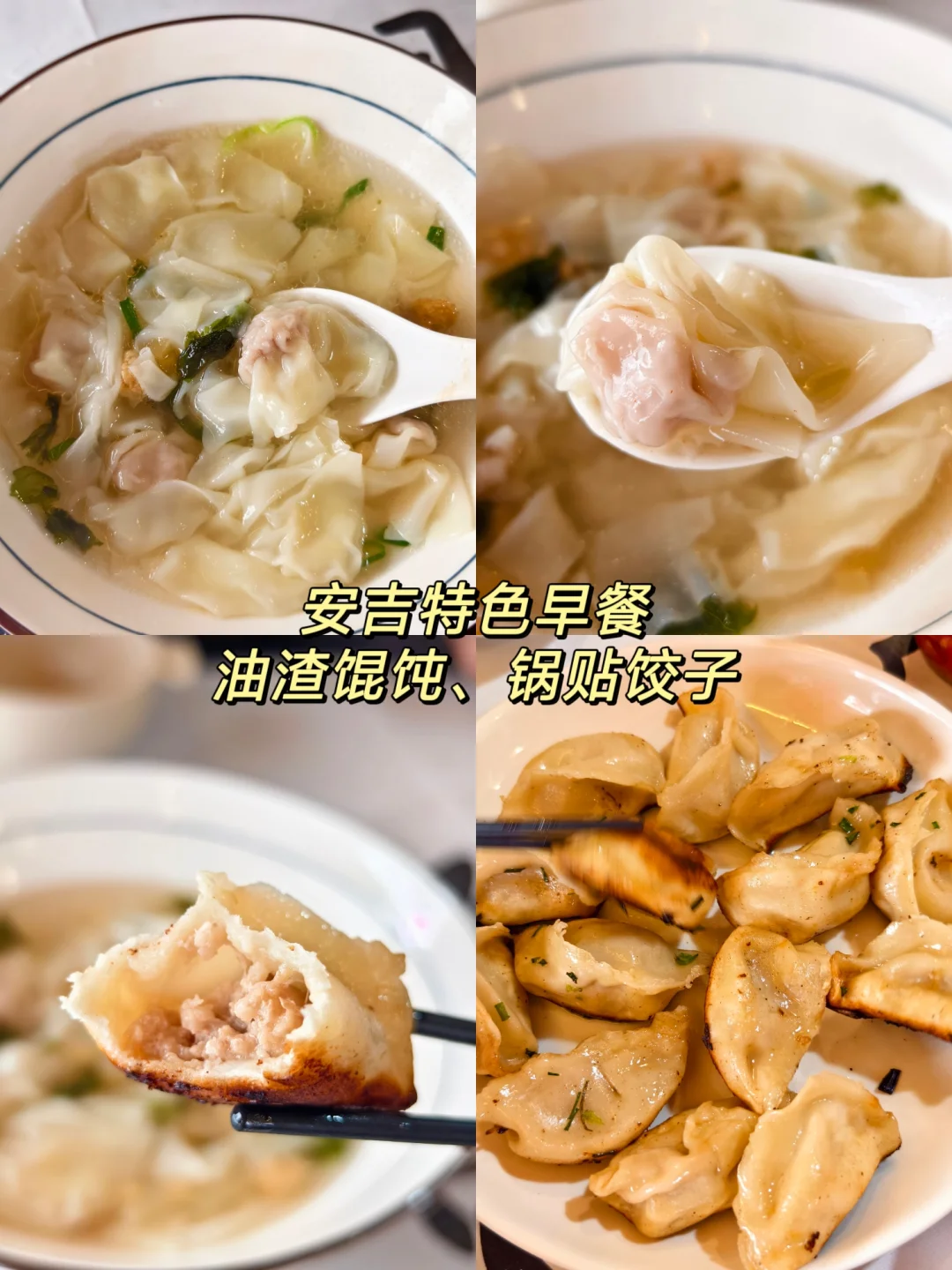 早餐是老 板娘自己包的当地特色小馄饨和锅贴包子