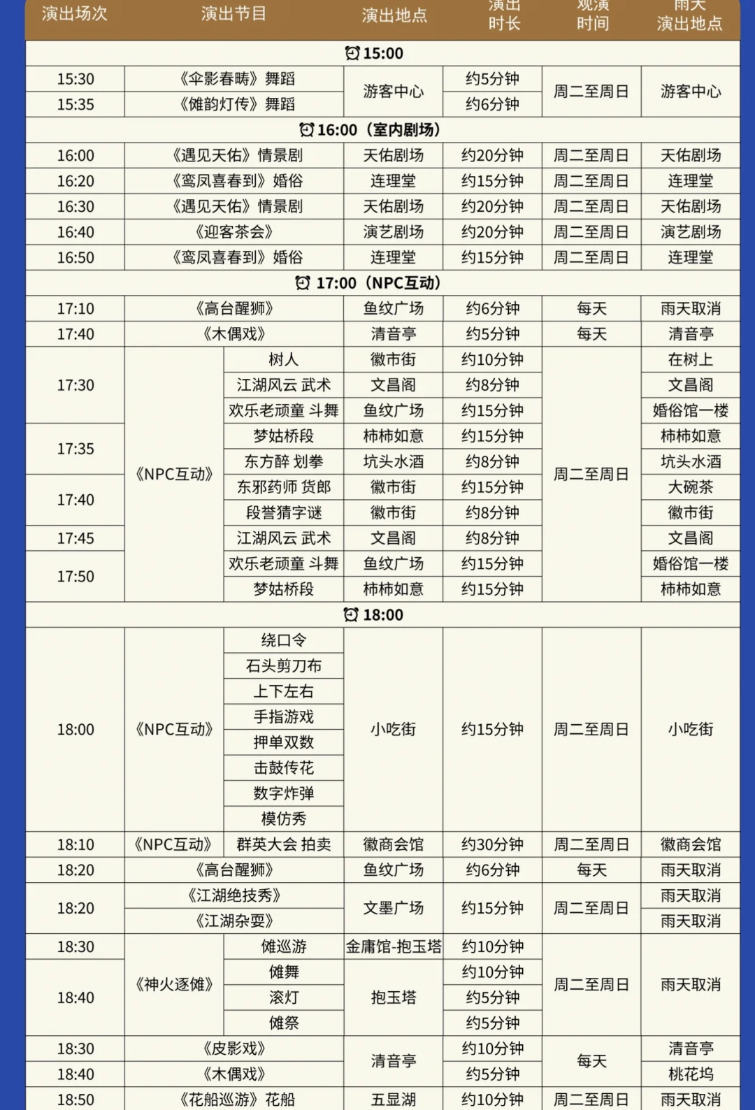 (如果当天不热,可以2点多就入园,看其他表演,时间表在图17、18)
