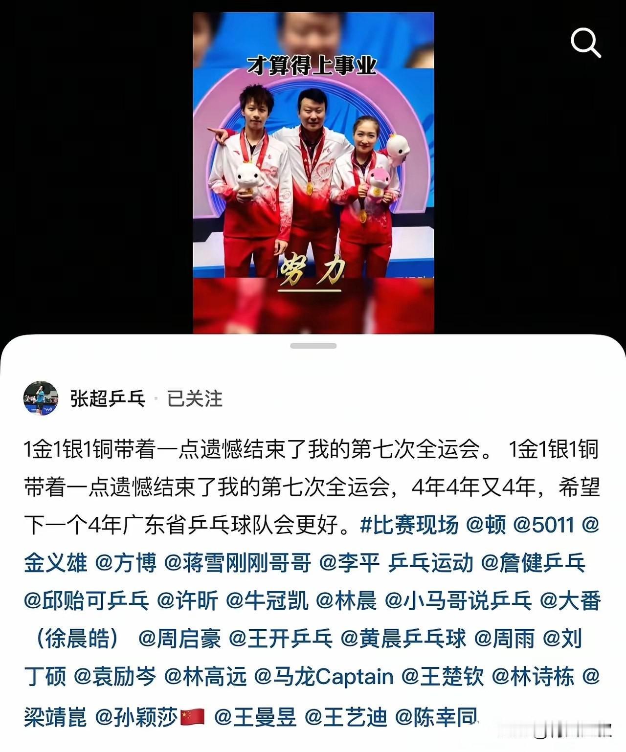 广东咆哮教练又开始骚操作了,这次还扯上了王楚钦和孙颖莎! 开始发文还挺正常, 就是总结了广东全运会的成绩, 一金一银一铜。 结果后面疯狂@, 把王楚钦和孙颖莎都@了。 人家又不是广东队, 后来我一想, 他应该是没搞懂#和@的用法!