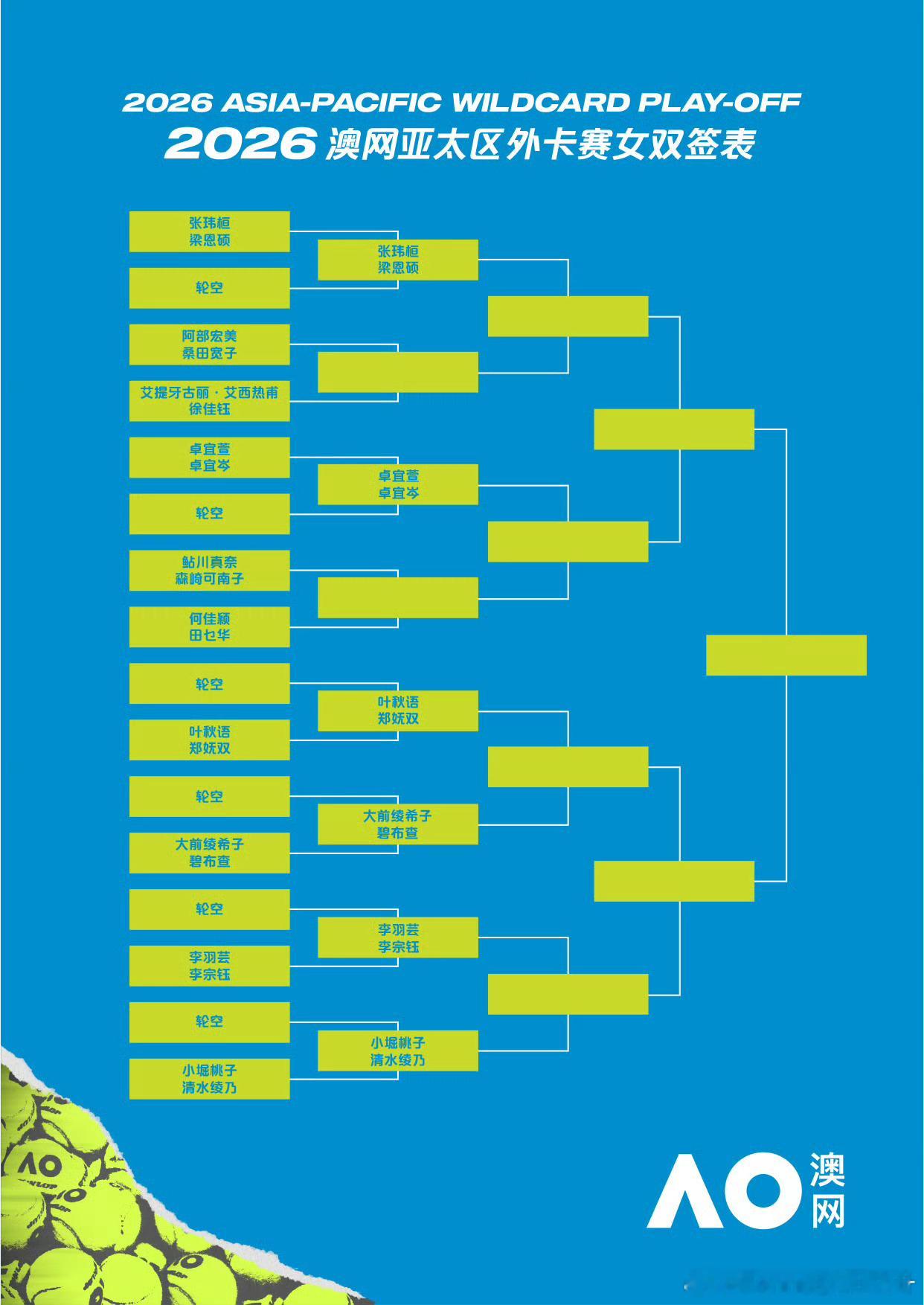 亚太区外卡赛女双签表【5】🇨🇳郑妩双/叶秋语【6】🇨🇳李宗钰/李羽芸均首轮轮空 丨