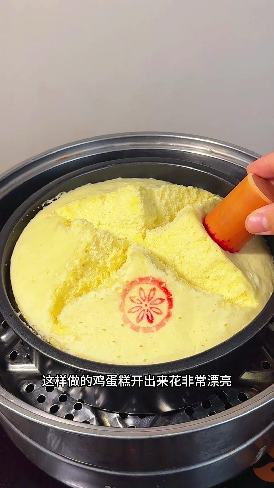 闽南古早味蛋糕,开花超漂亮!🍳古早味蛋糕这样做,想不开花都难! 先是准备材料:300克鸡蛋和300克白糖,倒入容器里,用打蛋器高速打发20分钟,打发到鸡蛋液发白,体积是原来的两倍大。 接着加入300克面粉(低筋面粉更合适),继续打发10分钟。 然后把面糊倒入模具,表面横竖撒点白糖,这样开花效果会更好。 水开后上锅蒸,大火蒸40分钟,全程不能开盖,蒸好后再打开盖子。 这样做出来的蛋糕开花特别漂亮,口感香甜蓬松暄软,真的超好吃!