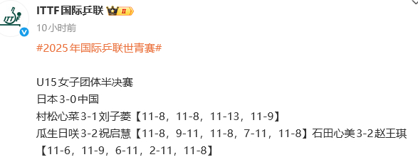 其他协会进步快?国乒出成绩晚?世青赛四个团体国乒只剩下U19女团,将与日本队争冠。