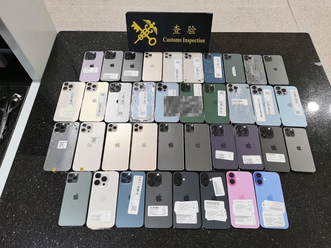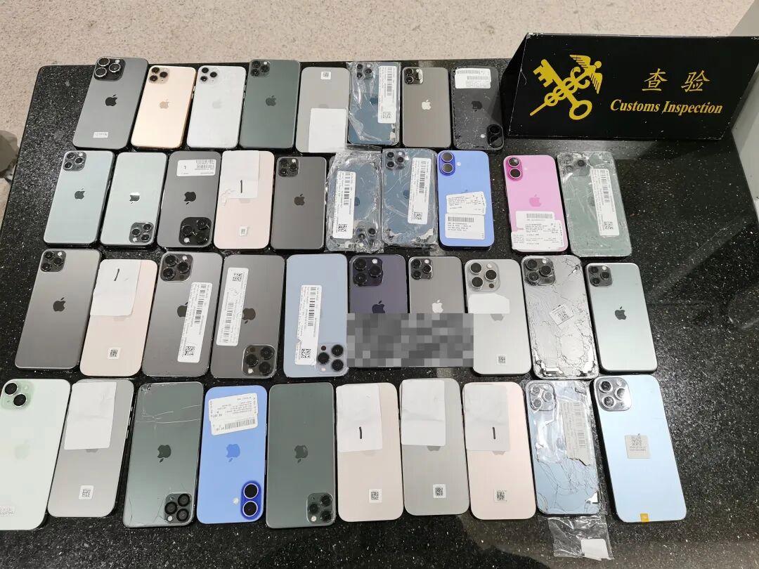 11月11日,拱北海关所属青茂海关连续查获两名旅客绑藏旧手机进境,合计76台。