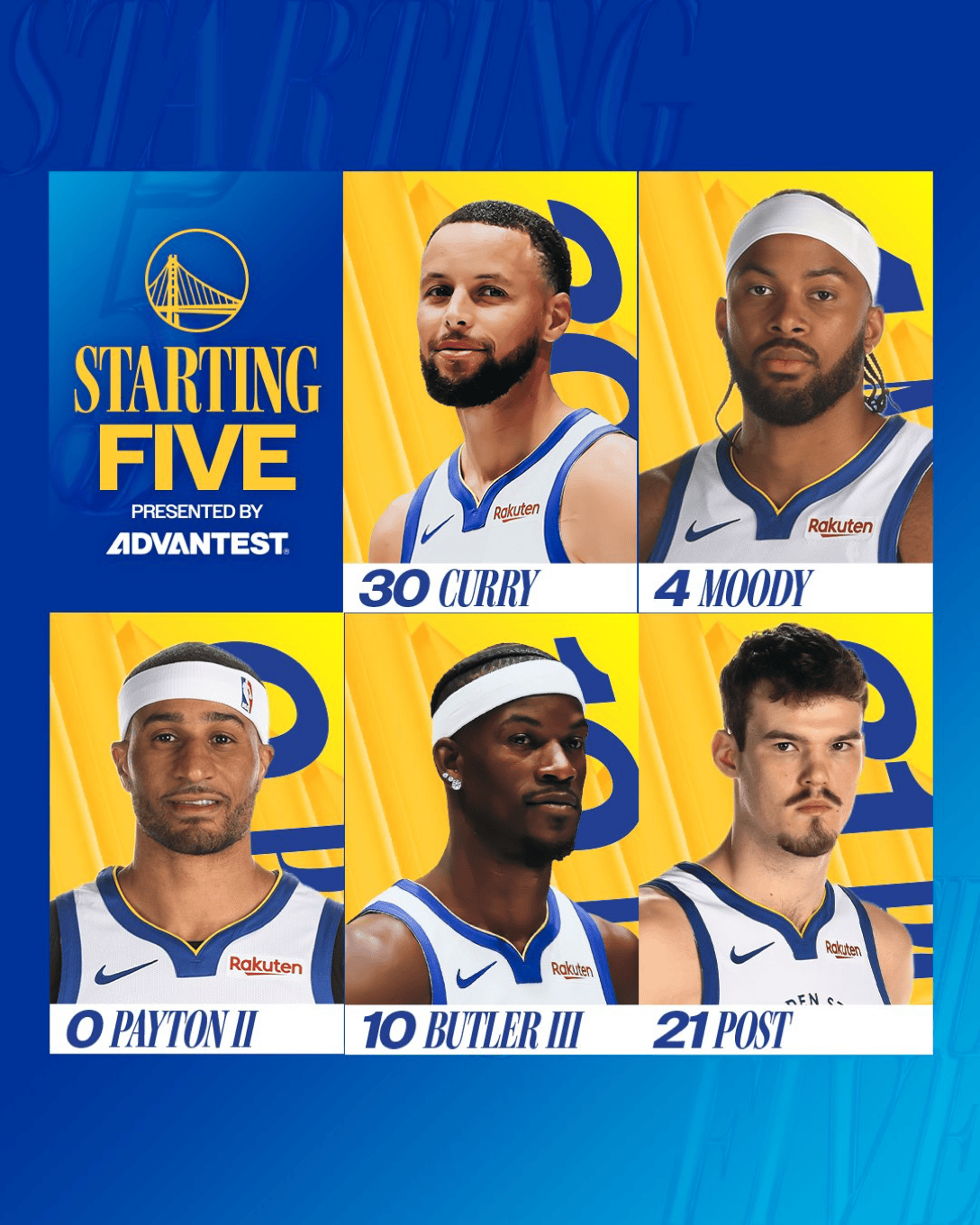 勇士首发:库里、穆迪、小佩顿、巴特勒、波斯特