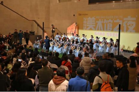 11月22日晚,遵义市美术馆广场热闹非凡,大厅灯火通明,“美术馆之夜——弦间画语·悦享冬夜”活动温情上演,将展览、音乐、美食、非遗与互动体融为一体,让艺术烟火漫进城市冬夜。